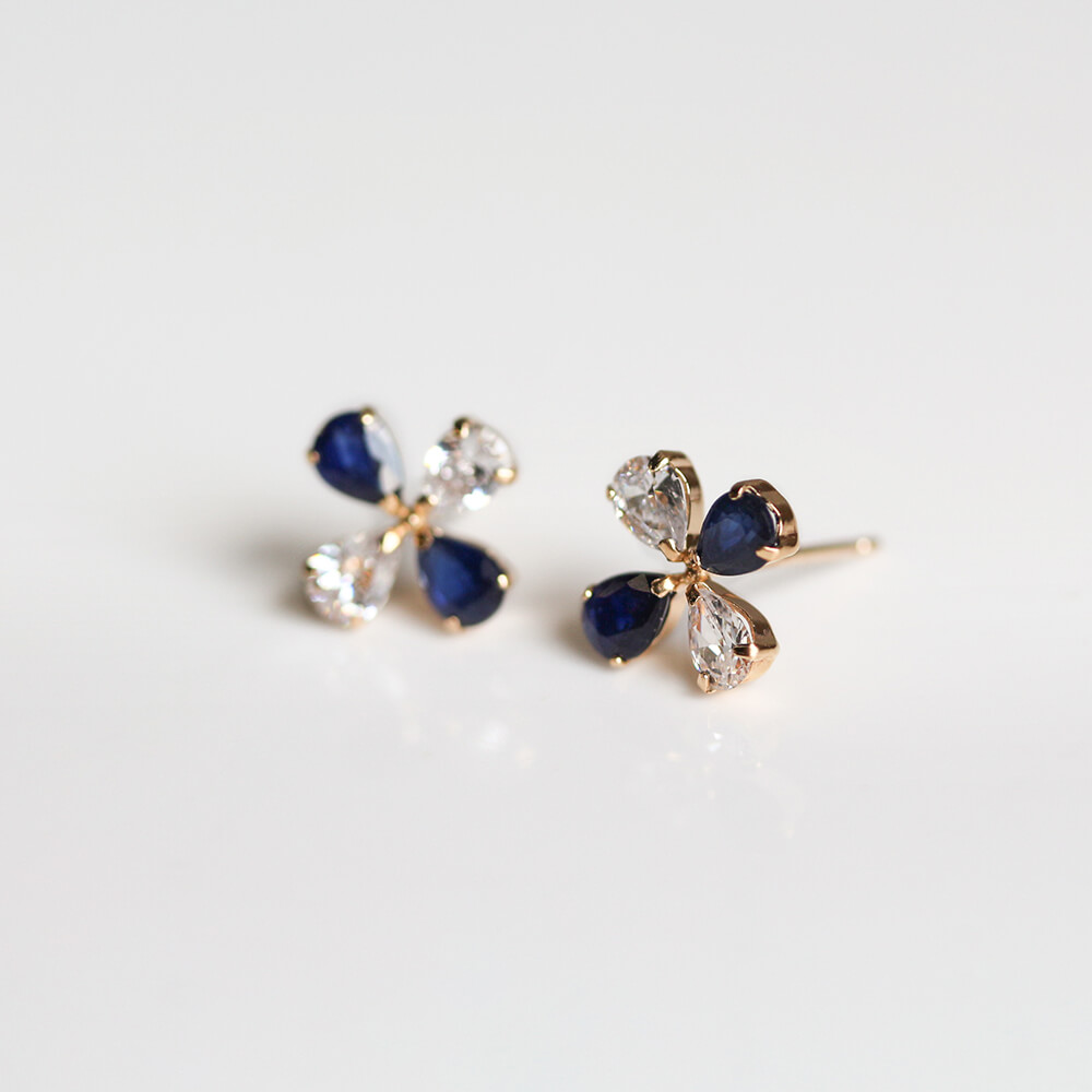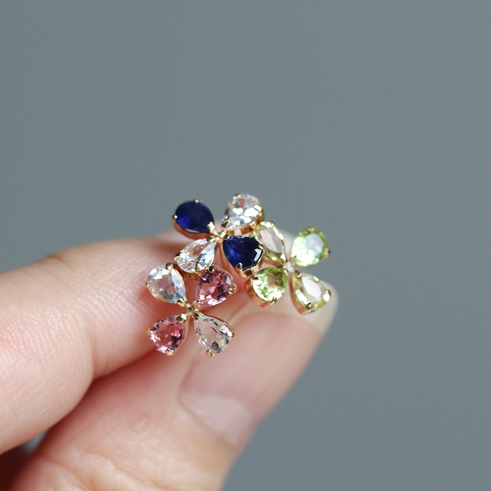 透明感輝く人気のカラーストーンであしらった花びらが、異なるブルーの魅力的な色合いを見せてくれます。
