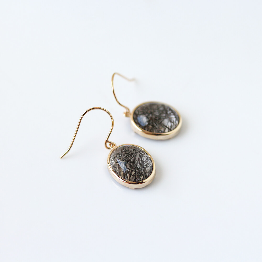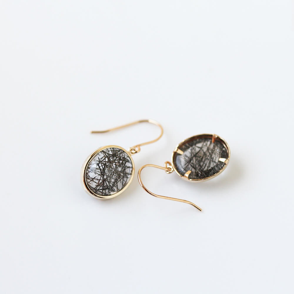 ブラック ルチルクォーツ フック ピアス | K10YG〈Web限定〉