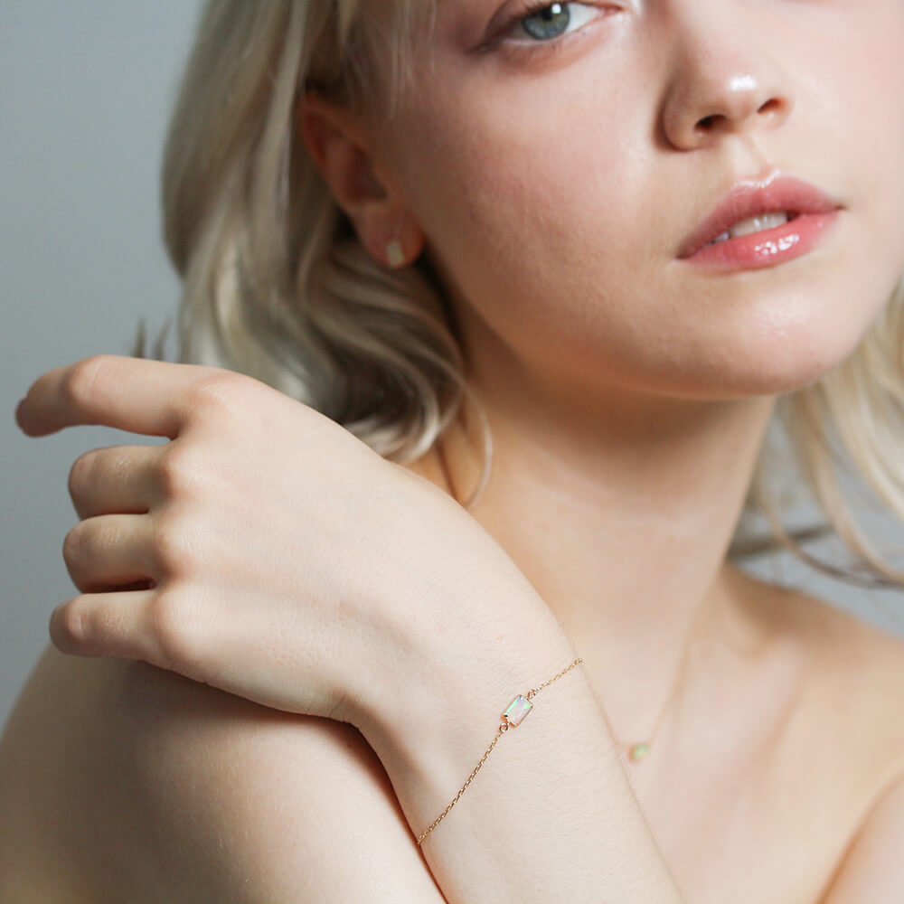 虹色に煌めくオパールブレスレット。