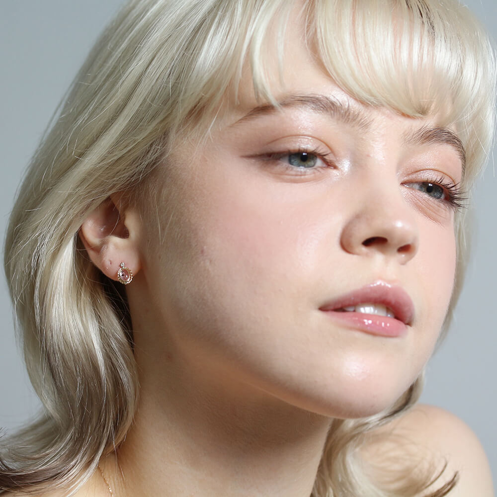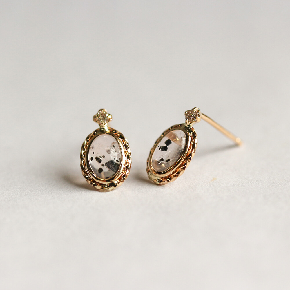 ドッティドピンククォーツ / ダイヤモンド ピアス | K10YG
