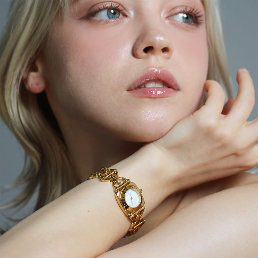 グッチを象徴するアイテムのひとつ、ホースビットを用いたデザイン。