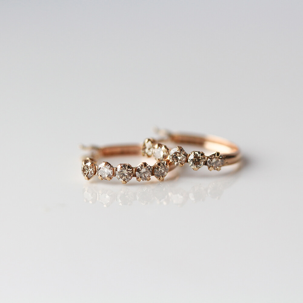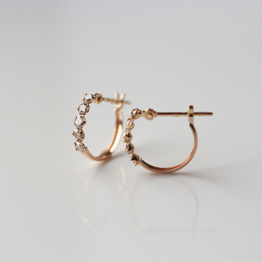 シャンパンダイヤモンドを5石連ねたフープピアス。