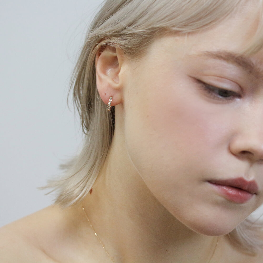 お出かけの際は、ピアスとのコーディネートでアレンジして楽しめます。