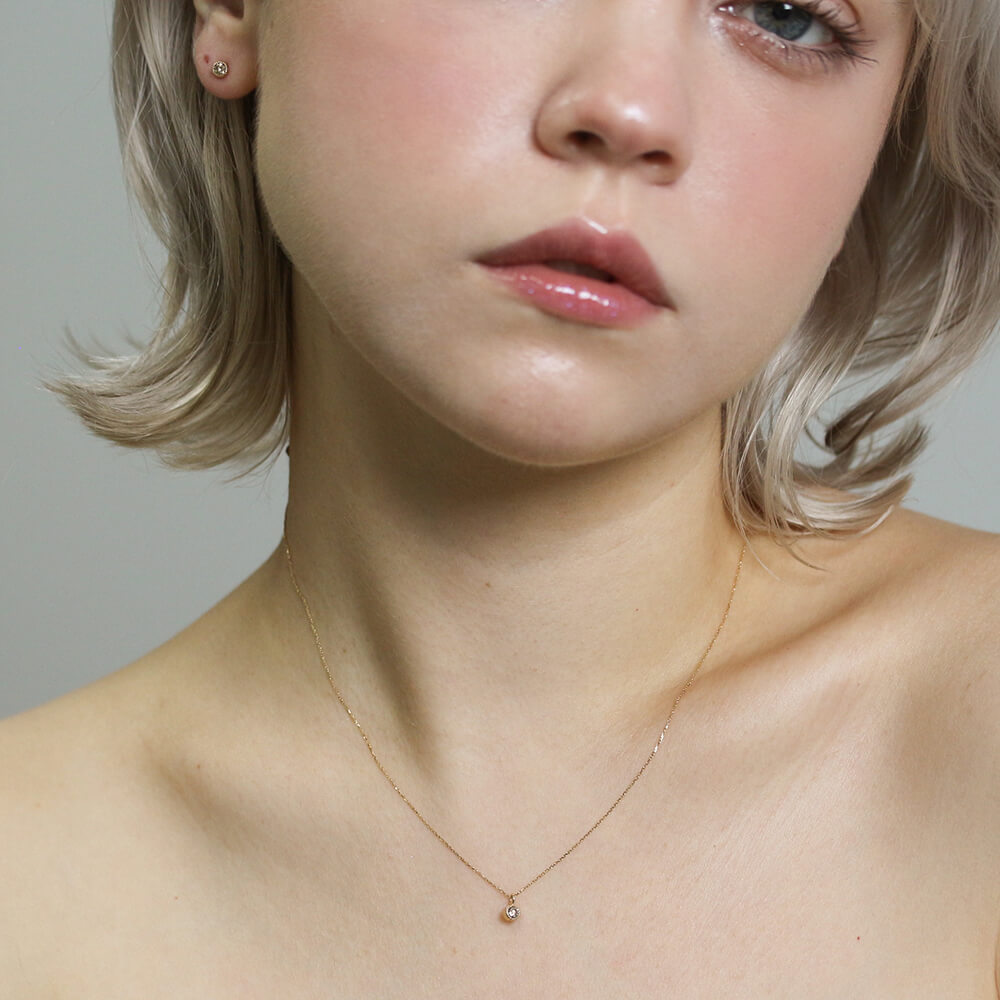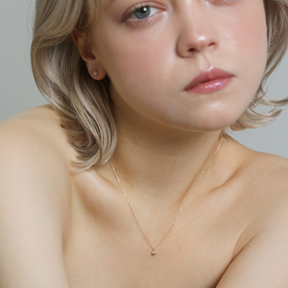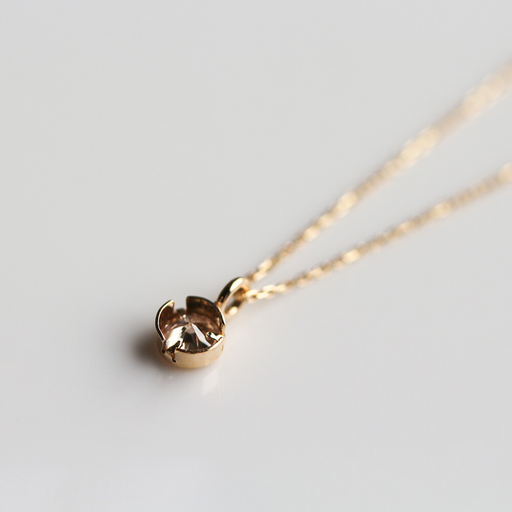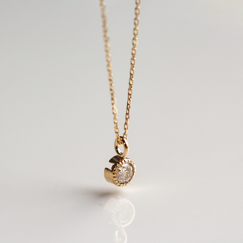 0.1ctのシャンパンダイヤモンドをシンプルにミルグレインの枠で留めたネックレス。