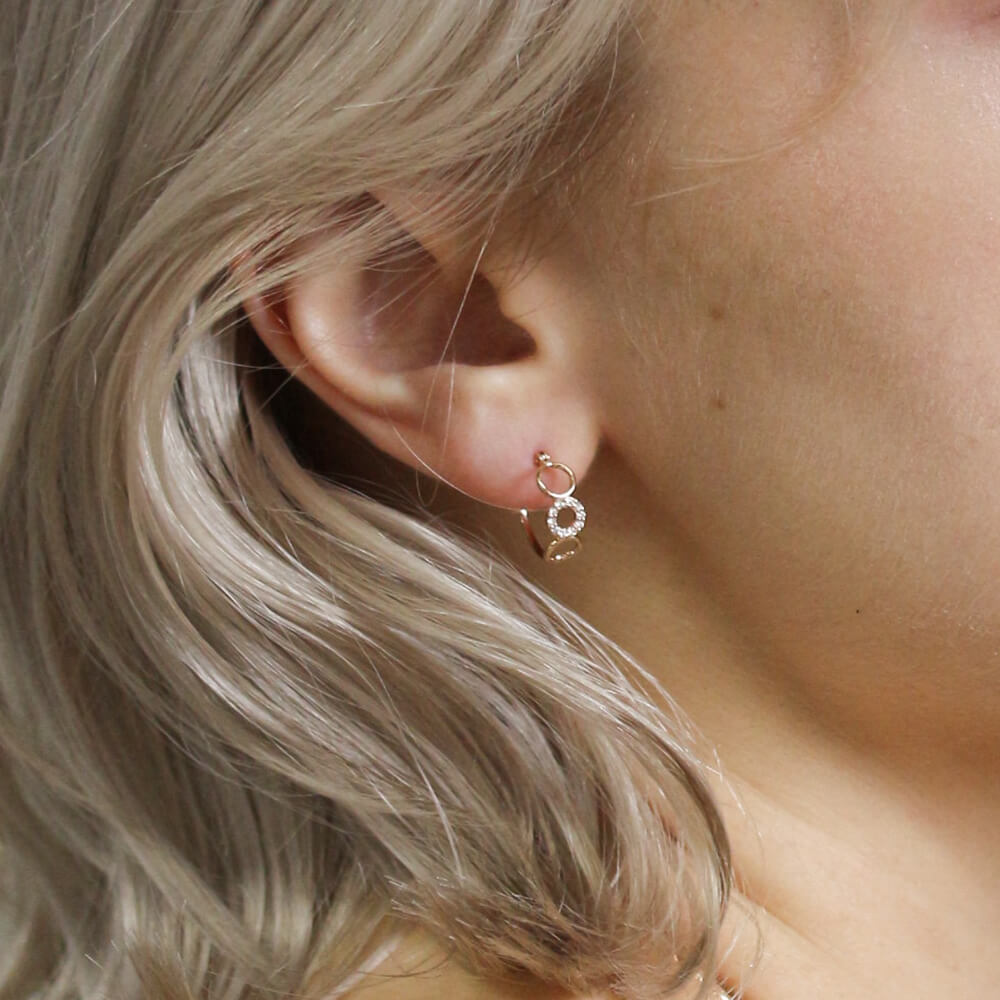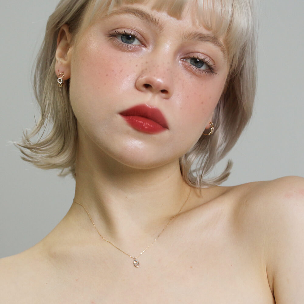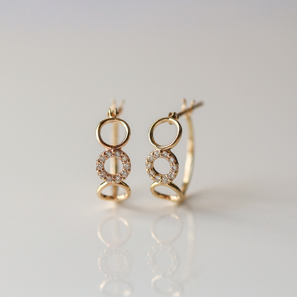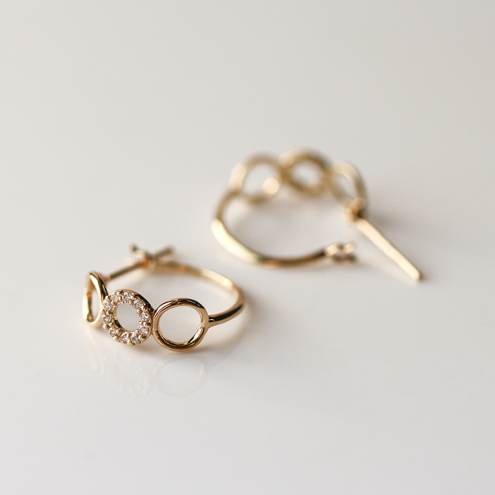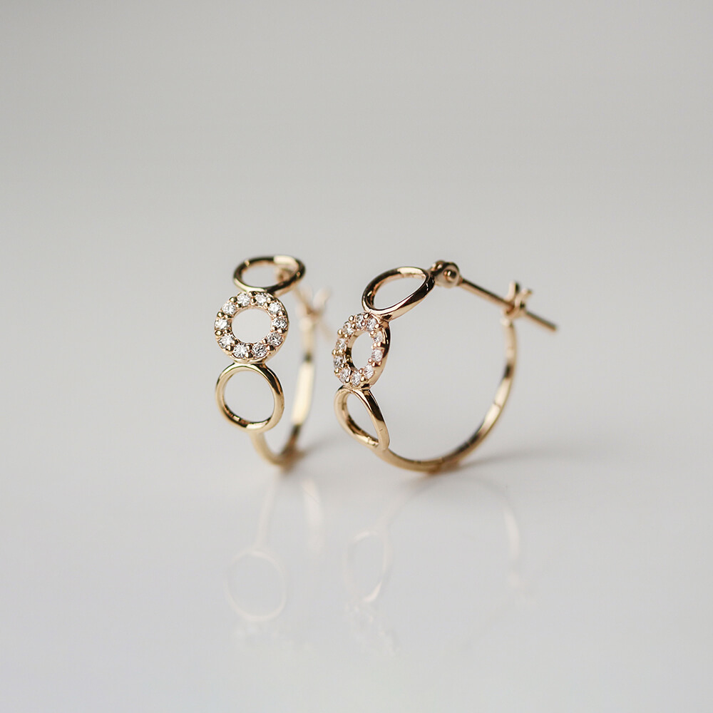 ダイヤモンドの煌めきが遊び心をくすぐるフープスナップピアス。