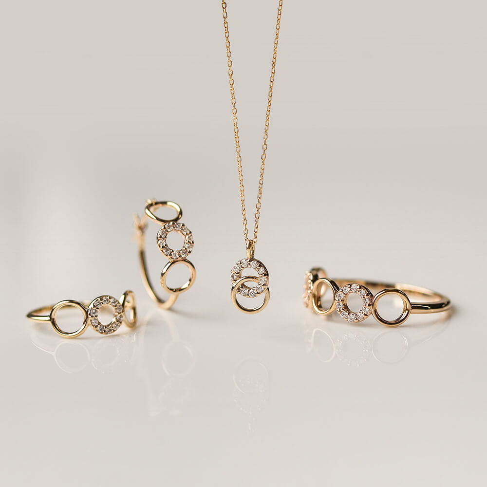 ミニマムなサークルモチーフにシンプルなフォルム、