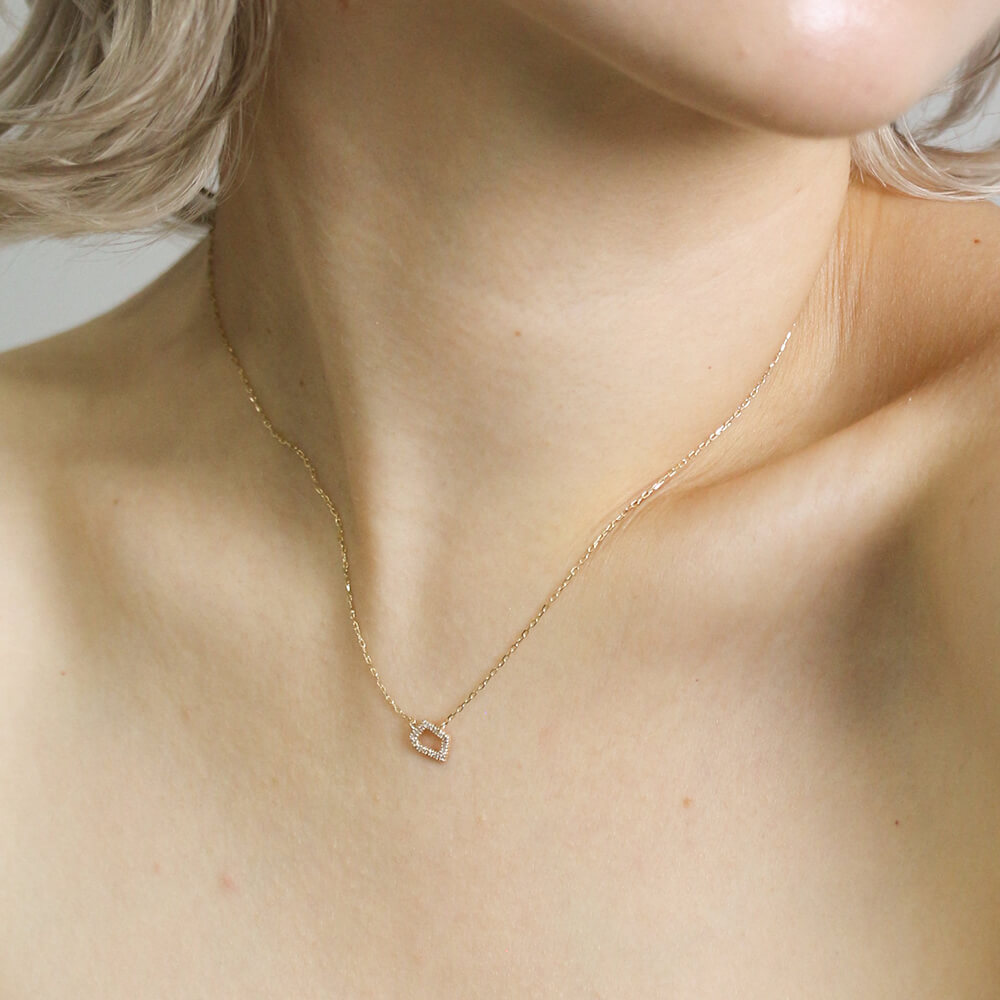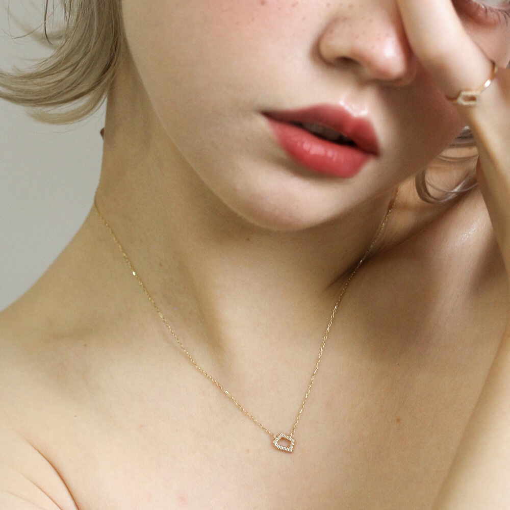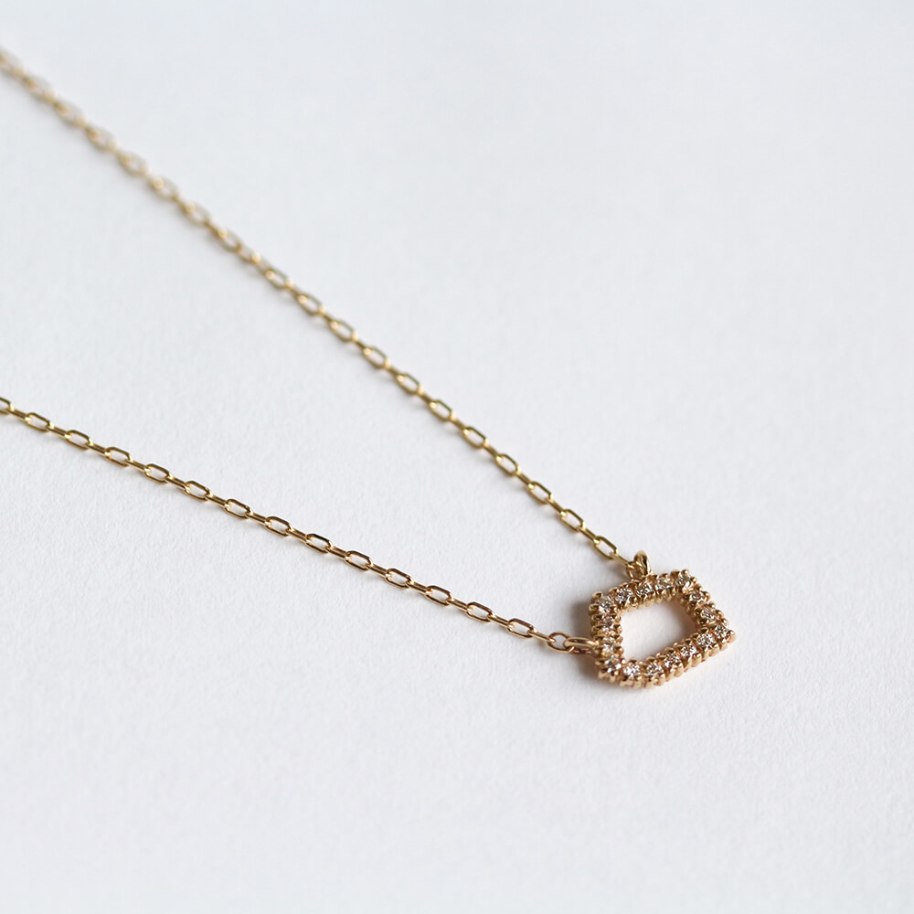 不規則で自由な五角形のモチーフに繊細で細やかなダイヤモンドが敷き詰められたネックレス。