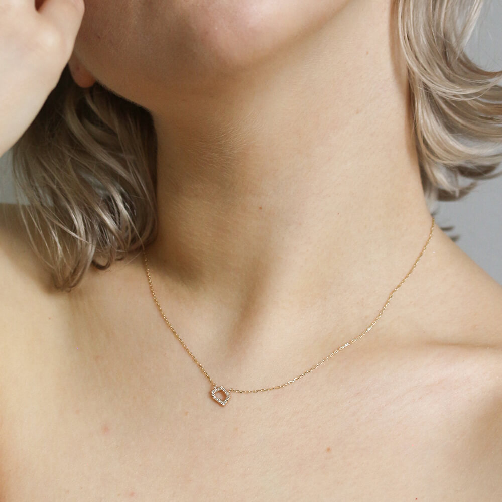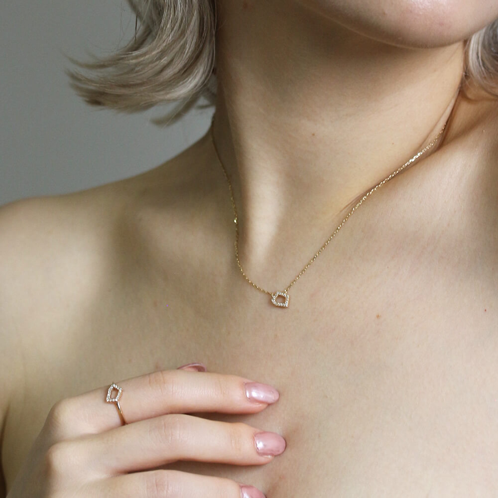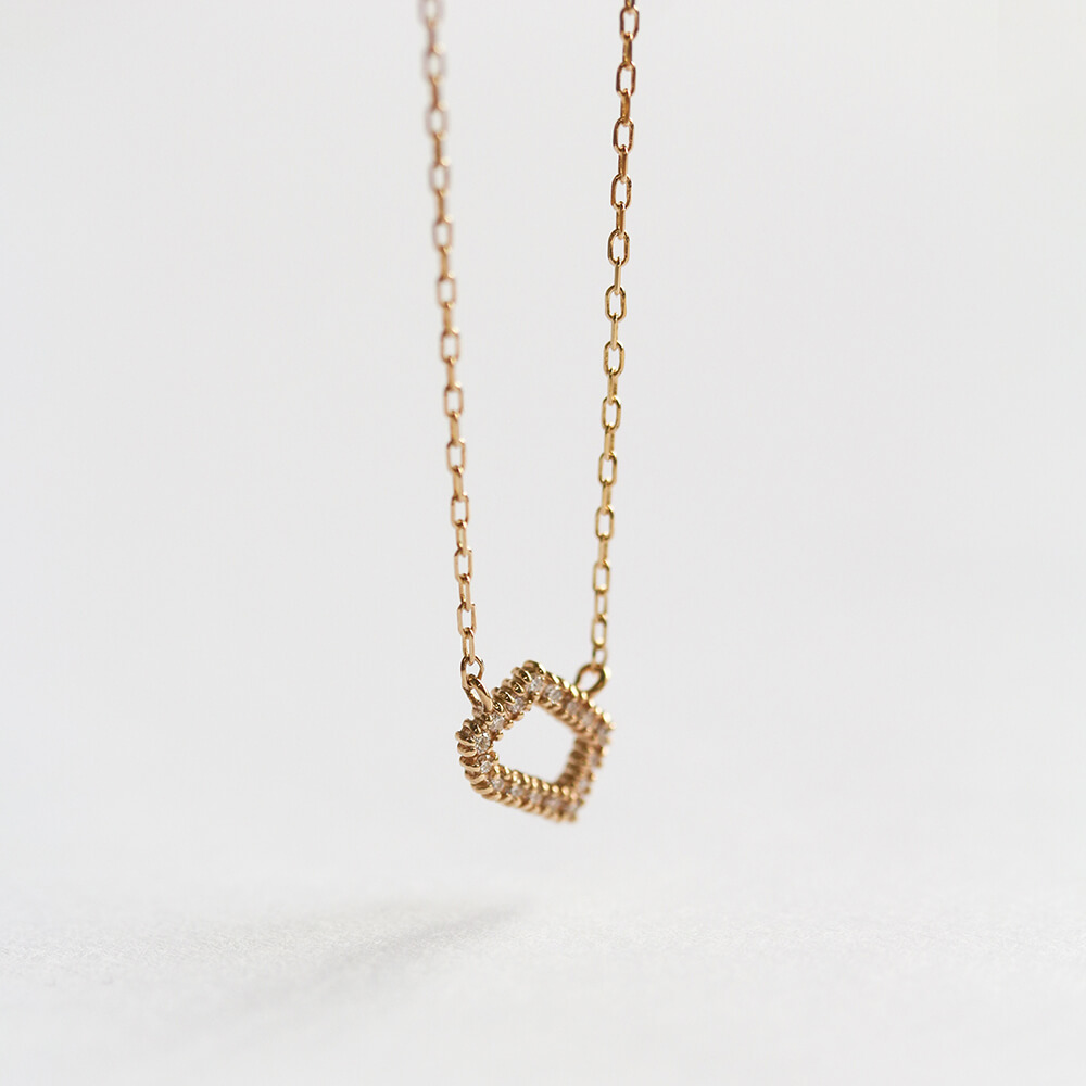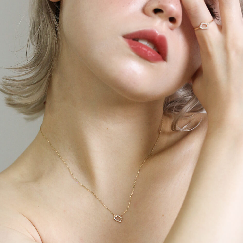 不規則で自由な五角形のモチーフに繊細で細やかなダイヤモンドが敷き詰められたネックレス。