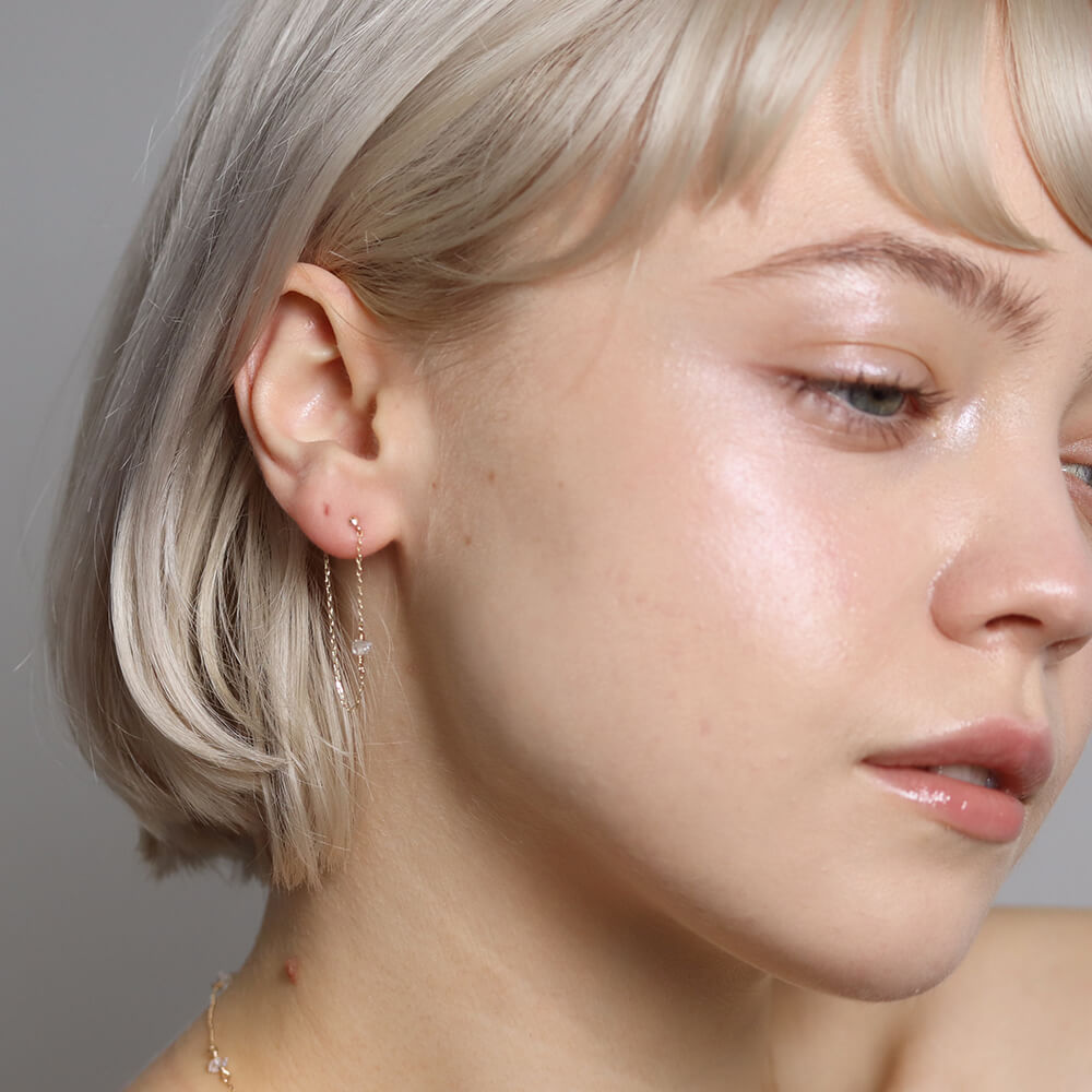 シャンパンダイヤモンド 0.1ct チェーン ピアス | K10YG 〈ヌーディー〉