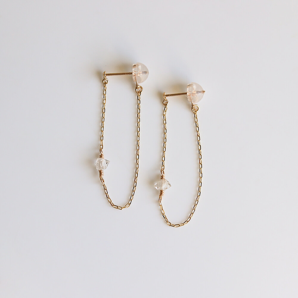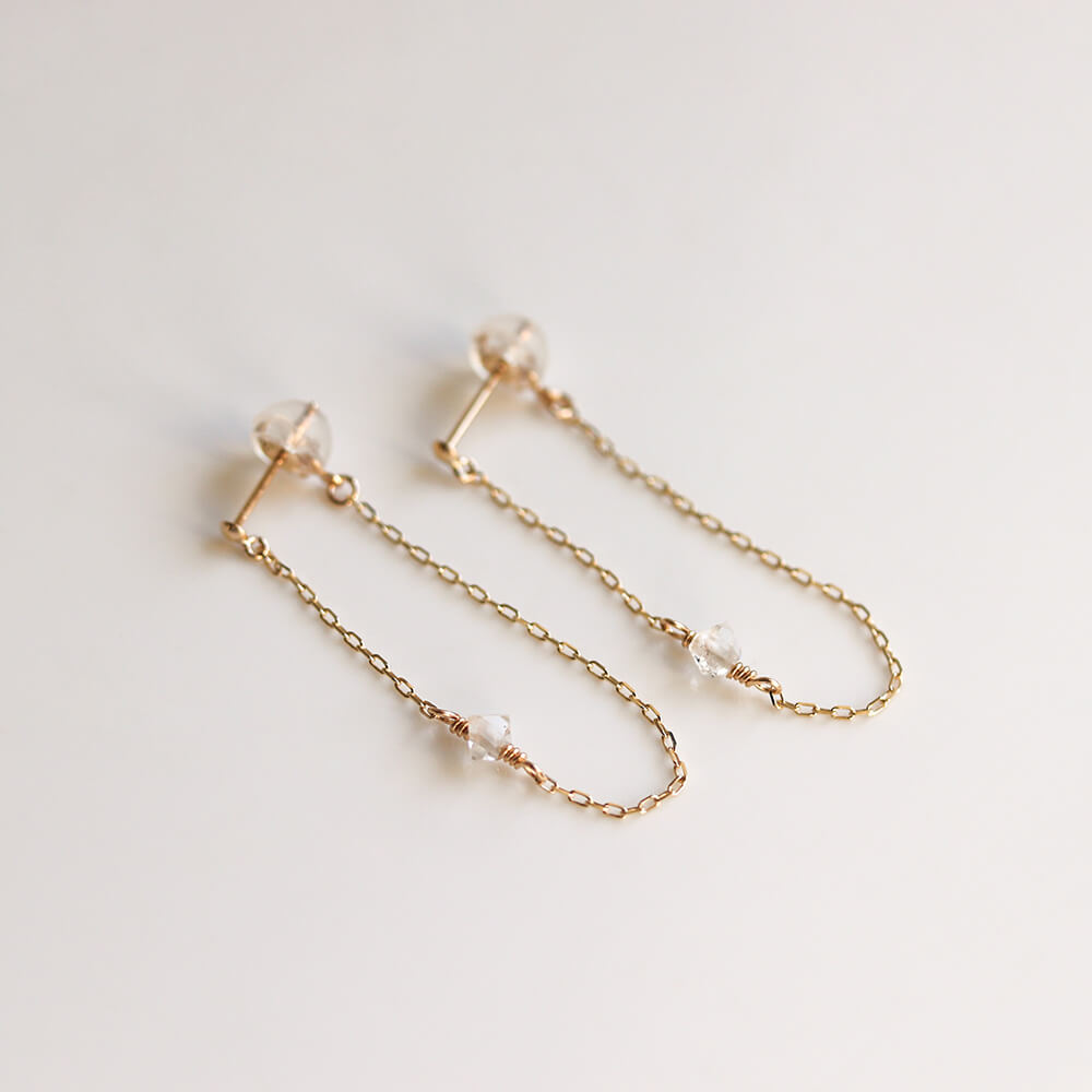 ハーキマーダイヤモンド チェーン ピアス | K10YG