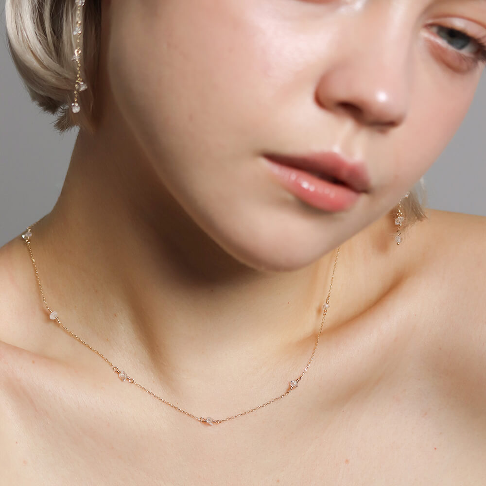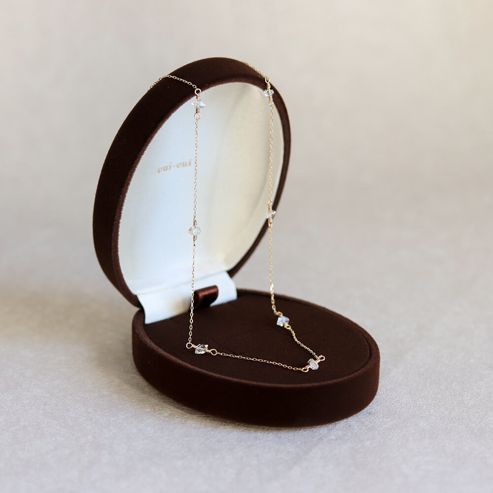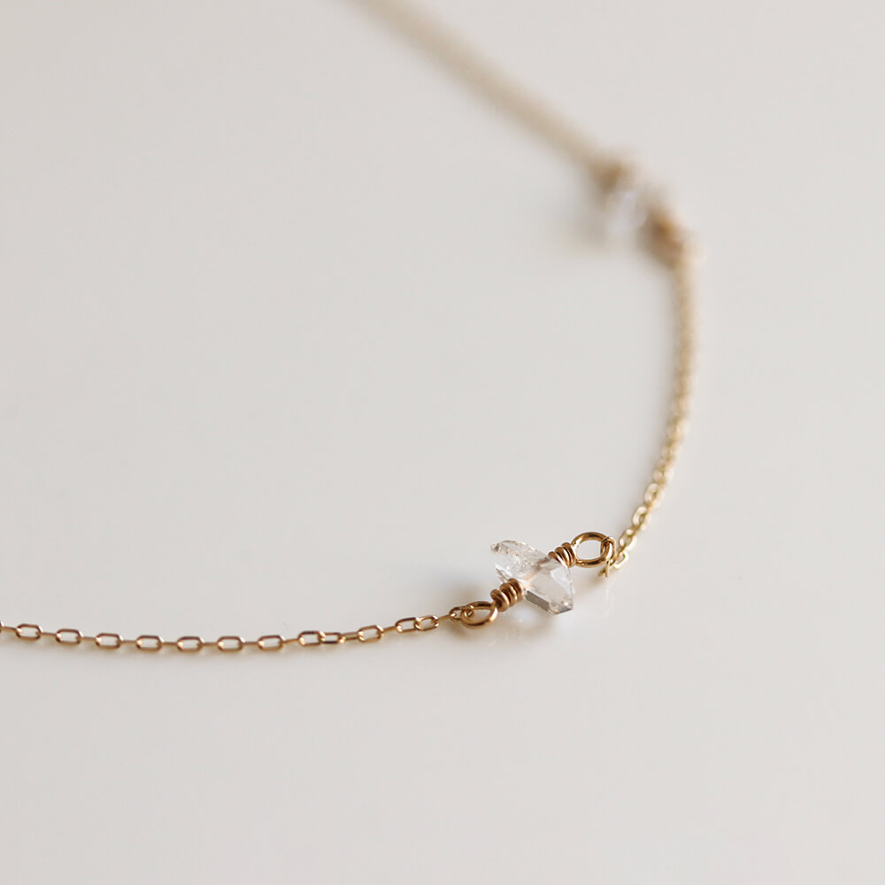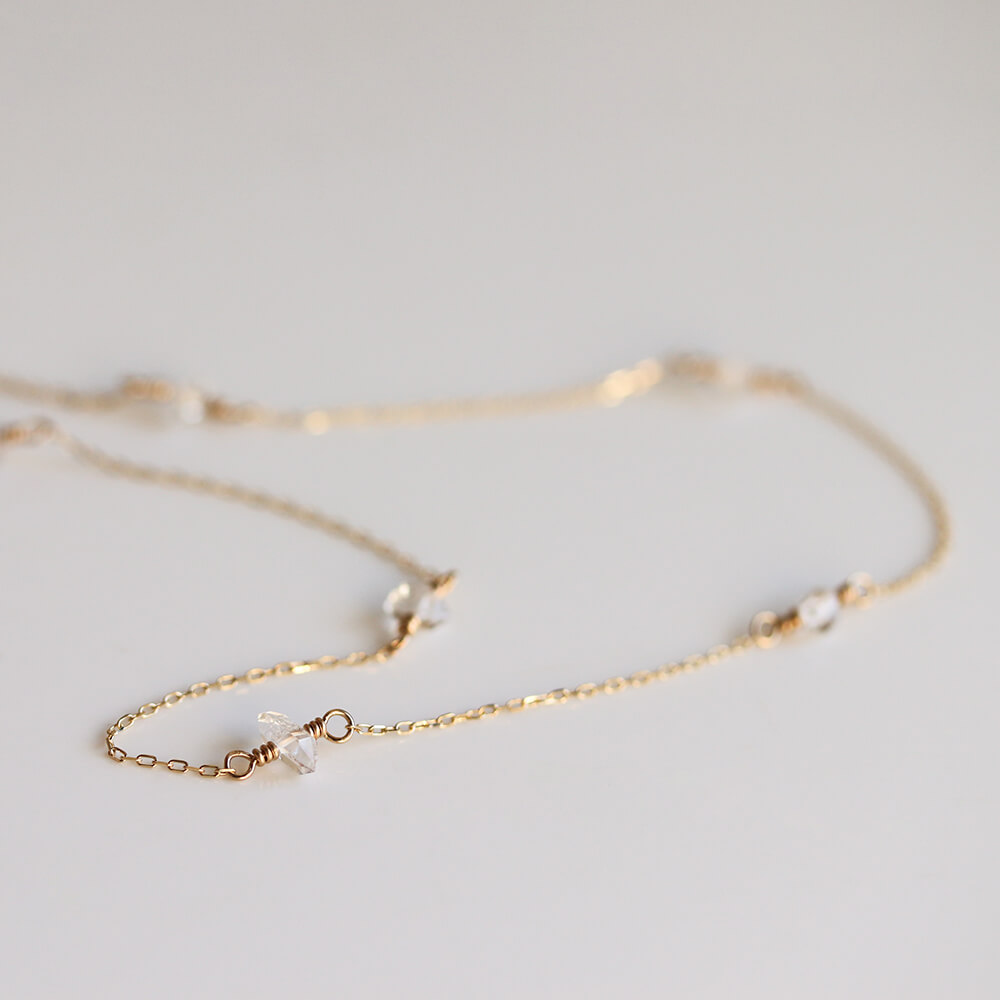 ハーキマーダイヤモンドを7石あしらったステーションデザインのネックレス。