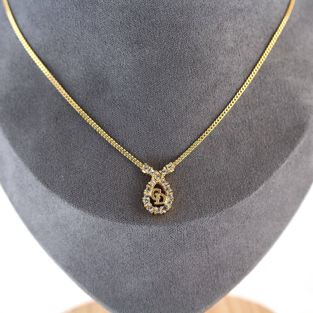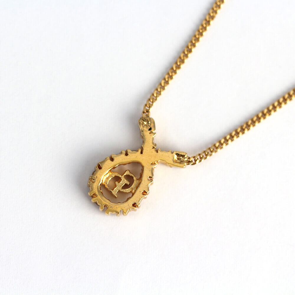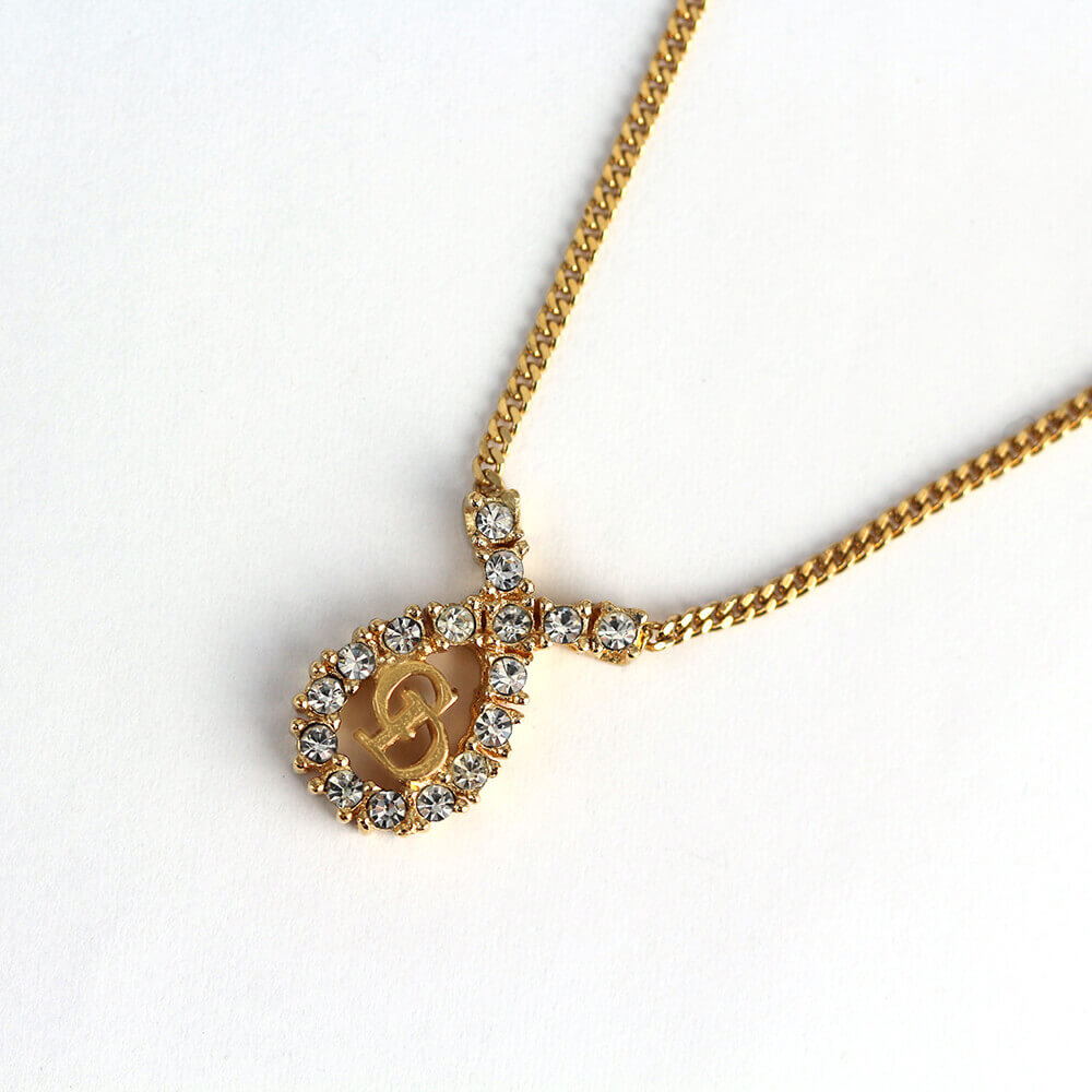 人気のCDロゴの周りにラインストーンがあしらわれたネックレス。