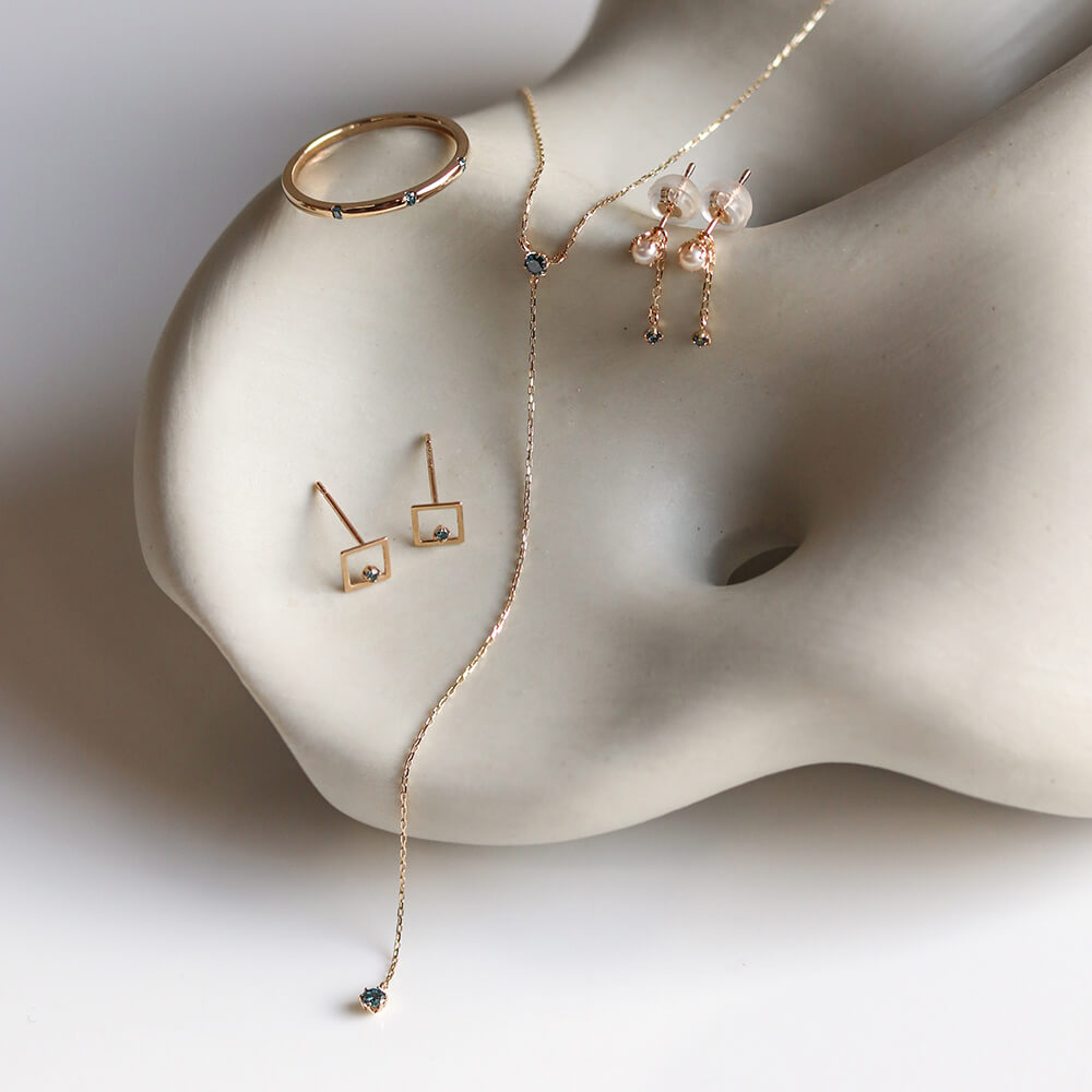 cui-cuiでは無色透明なダイヤモンドはもちろん、シャンパンダイヤやブラックダイヤなど大人っぽいカラーで人気のジュエリーもご用意。また世界最小にカットされた「世界最小ダイヤモンド」や、品質が良い石だからこそできるレーザーホールタイプの「ヌーディーダイヤモンド」などの商品も取り揃えております。