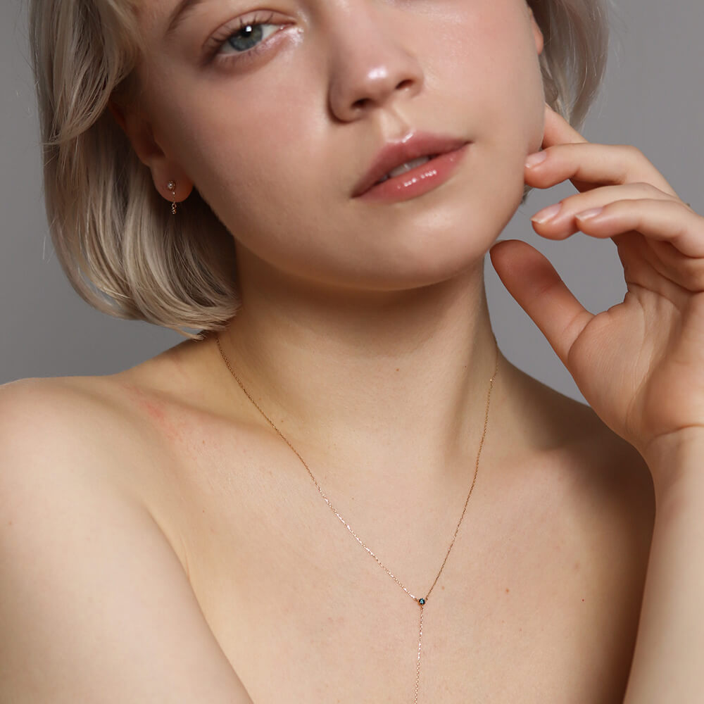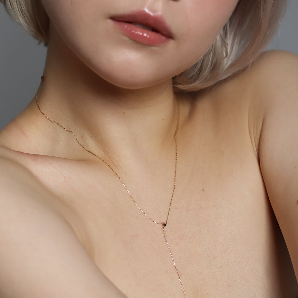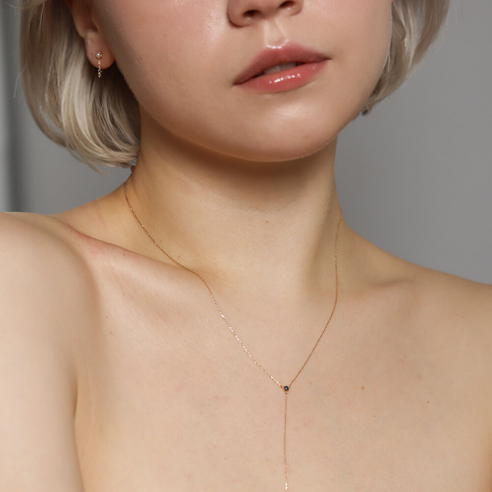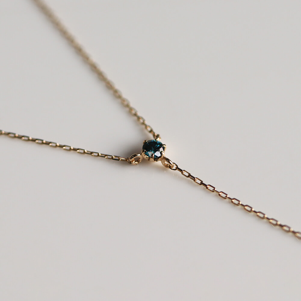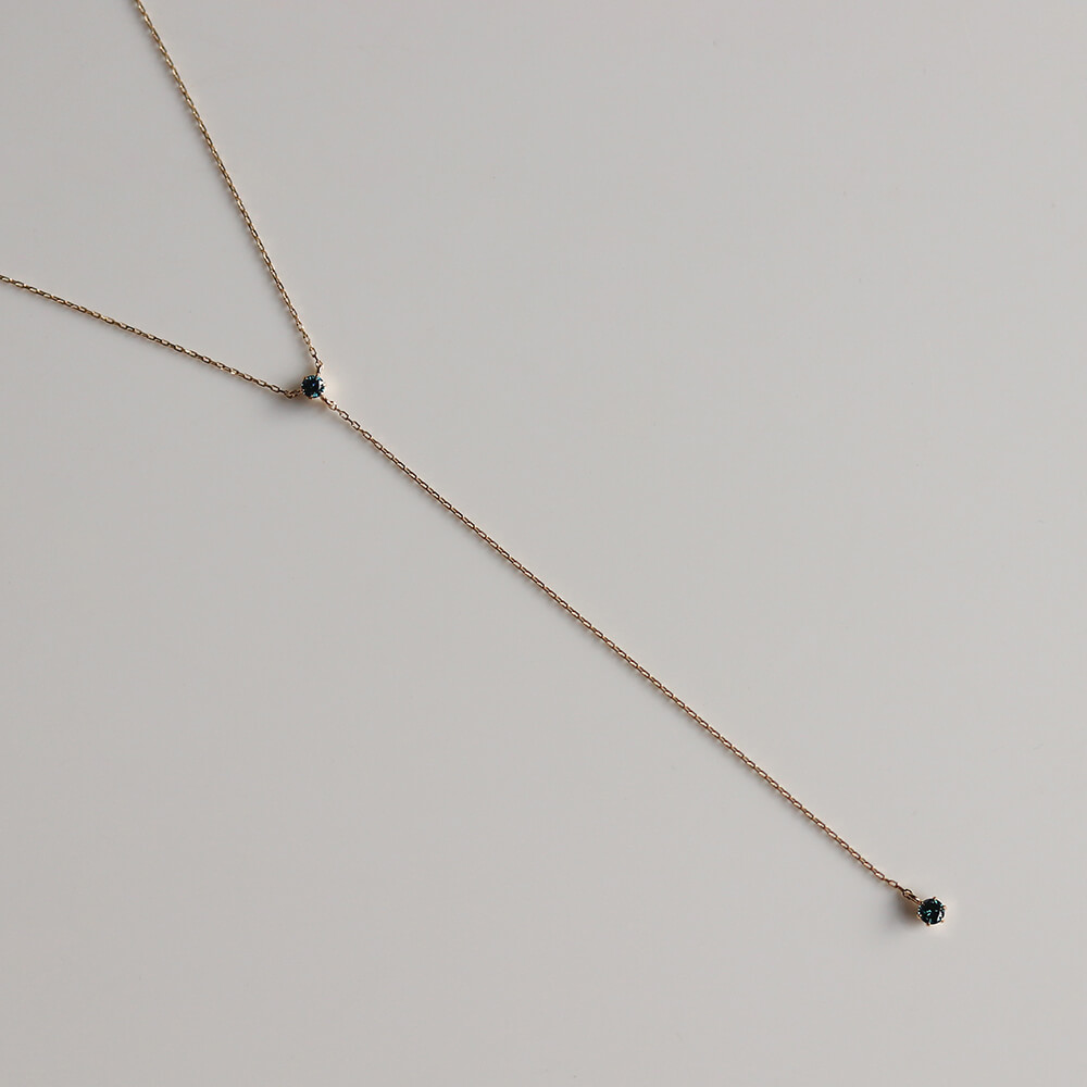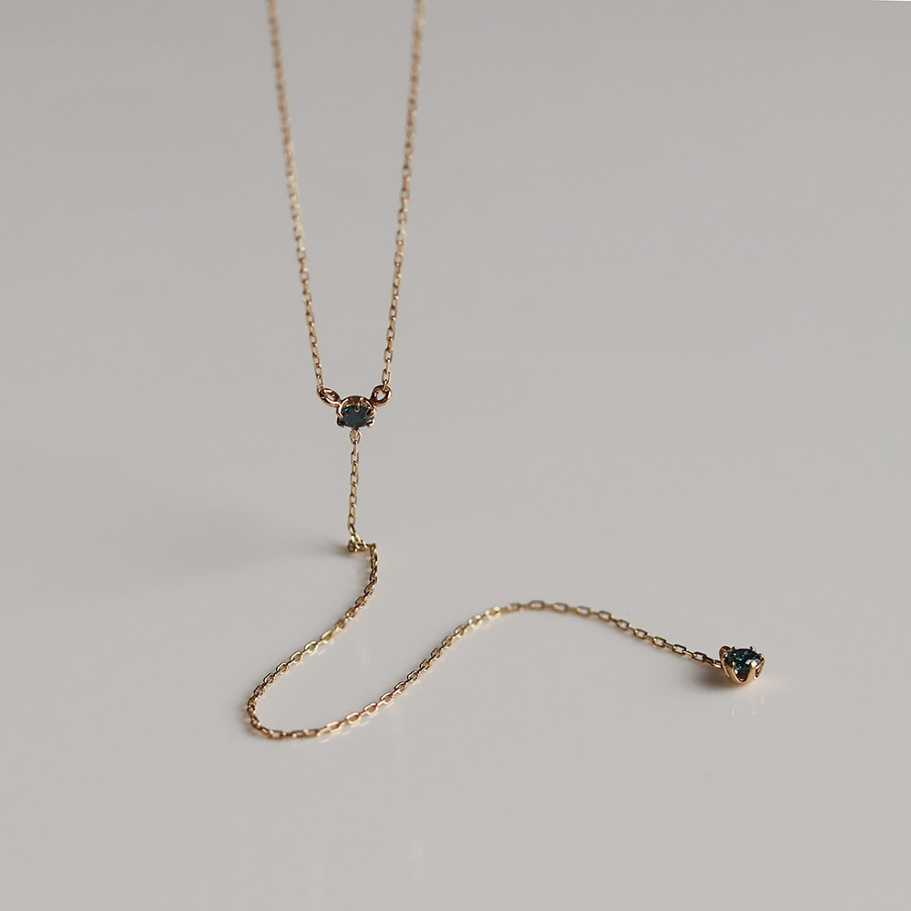 シンプルなコーディネートにこそ合わせたいブルーダイヤモンドのY字ネックレス。