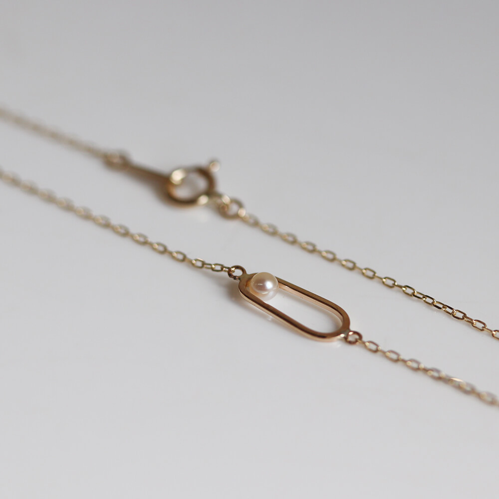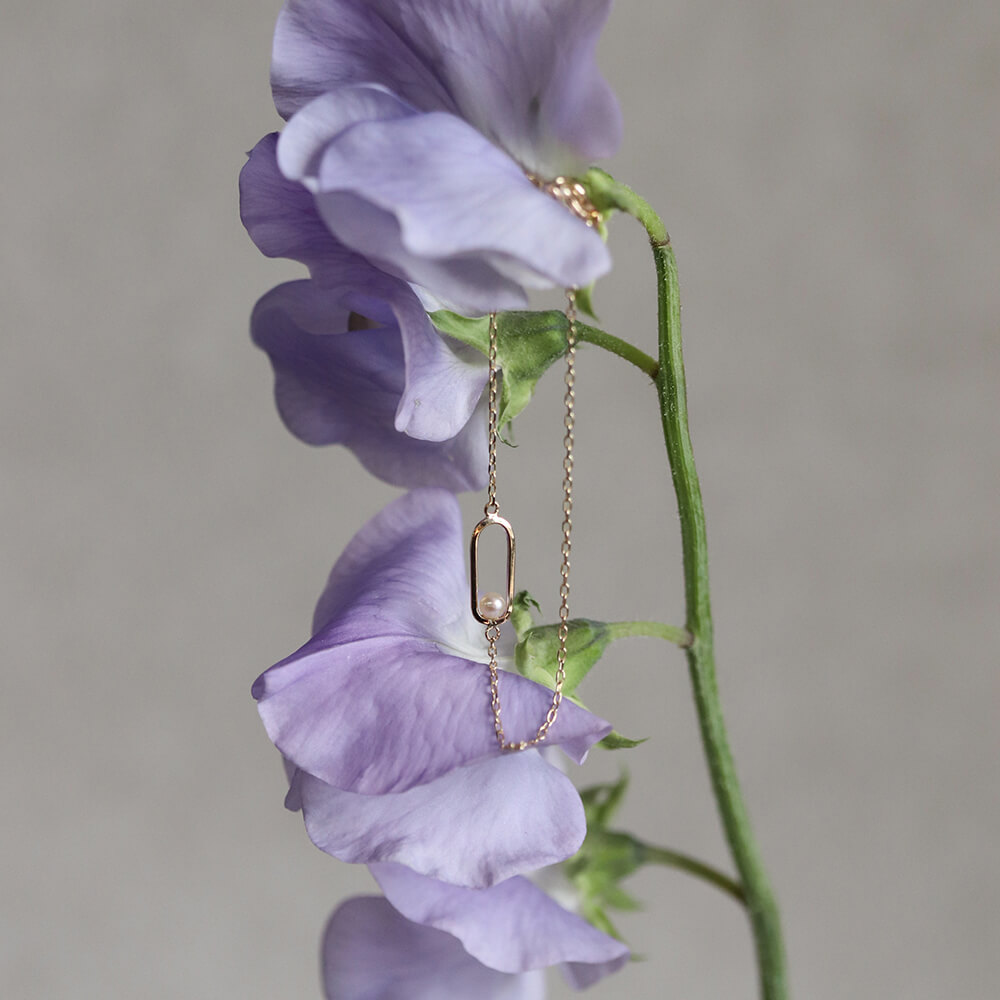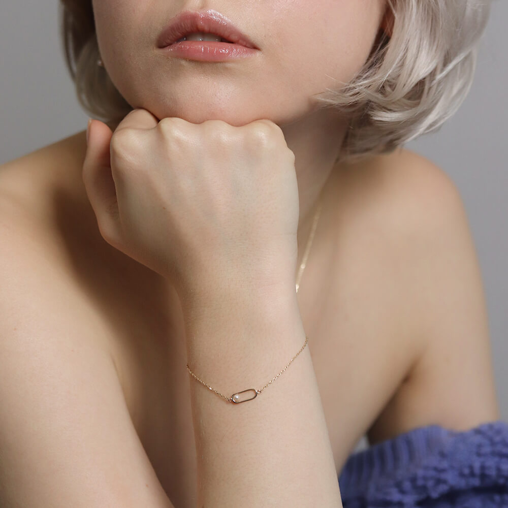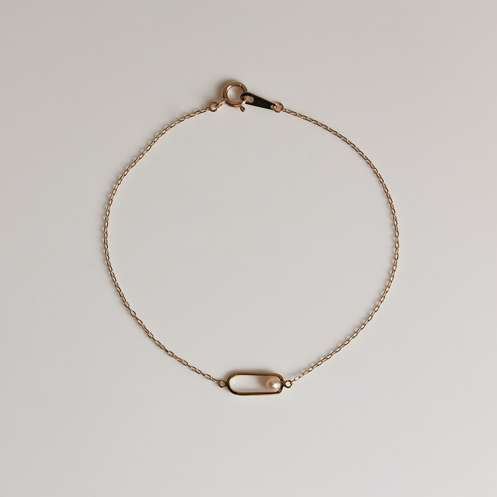 ゴールドのモチーフに1粒のパールがあしらわれたシンプルなモチーフブレスレット。