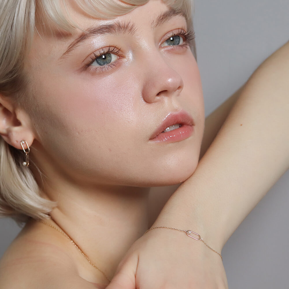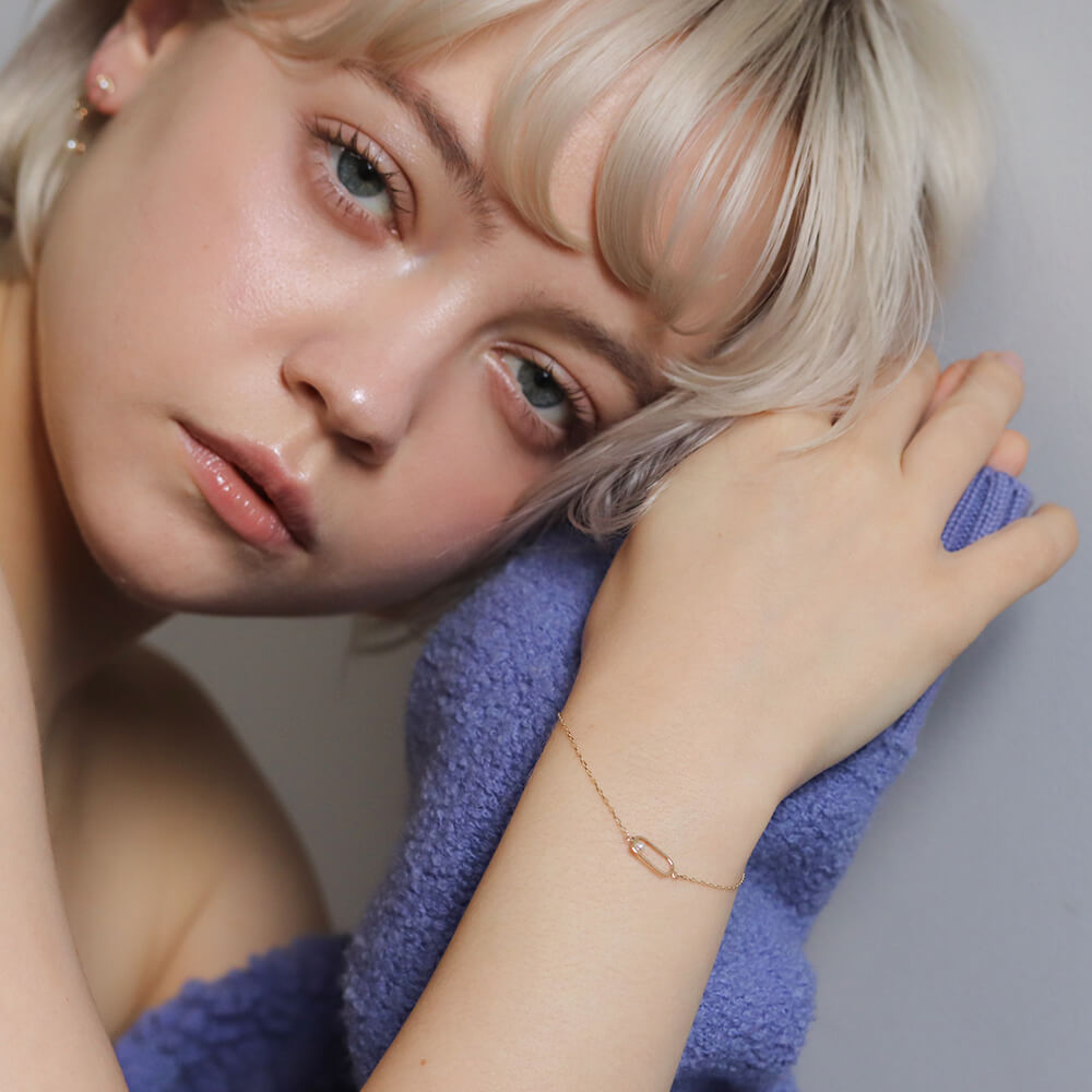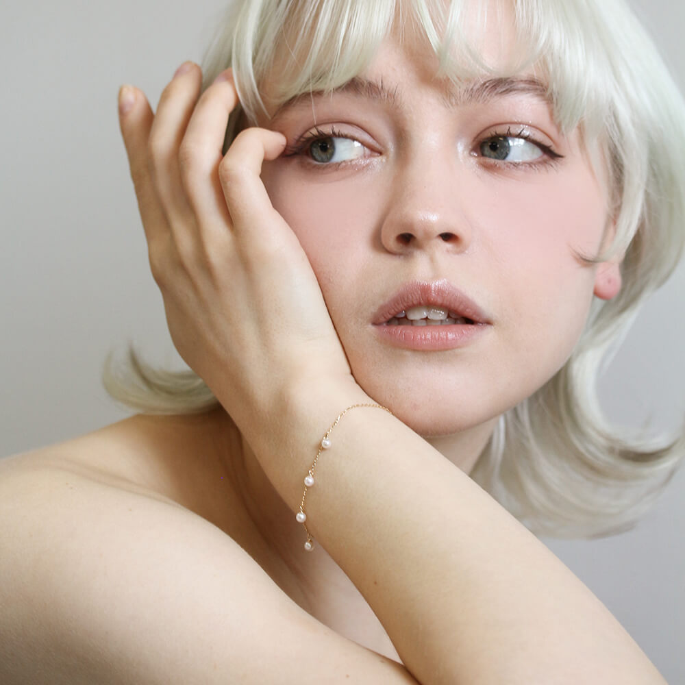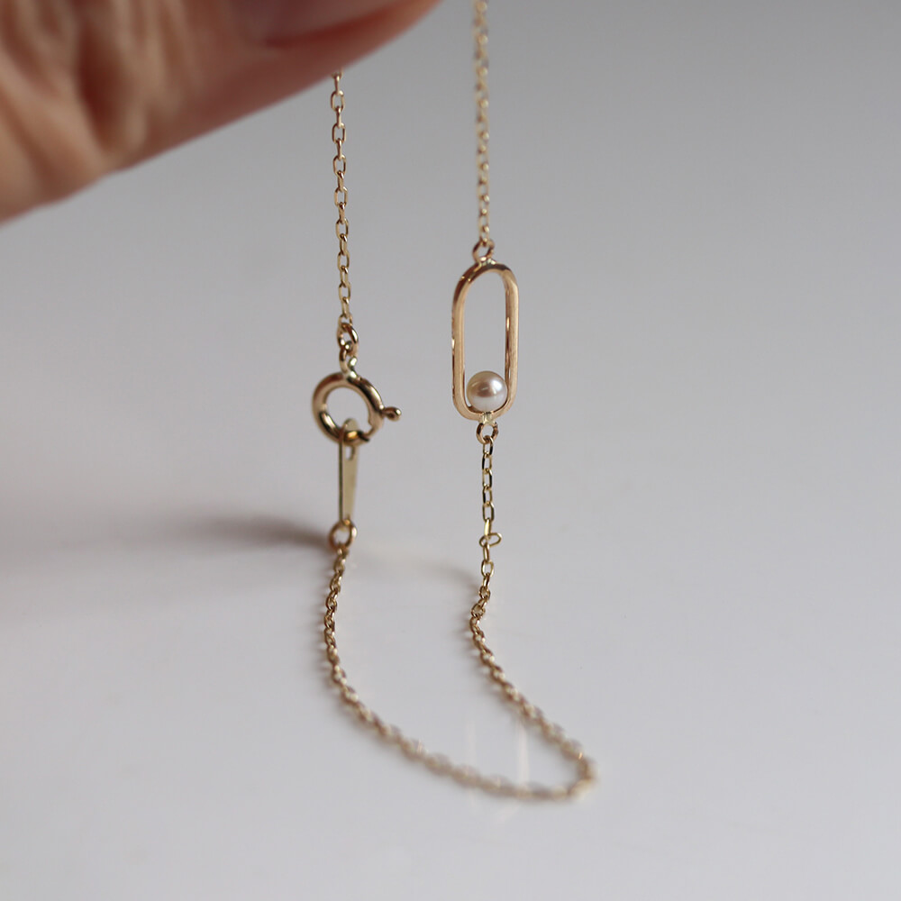 ゴールドのモチーフに1粒のパールがあしらわれたシンプルなモチーフブレスレット。