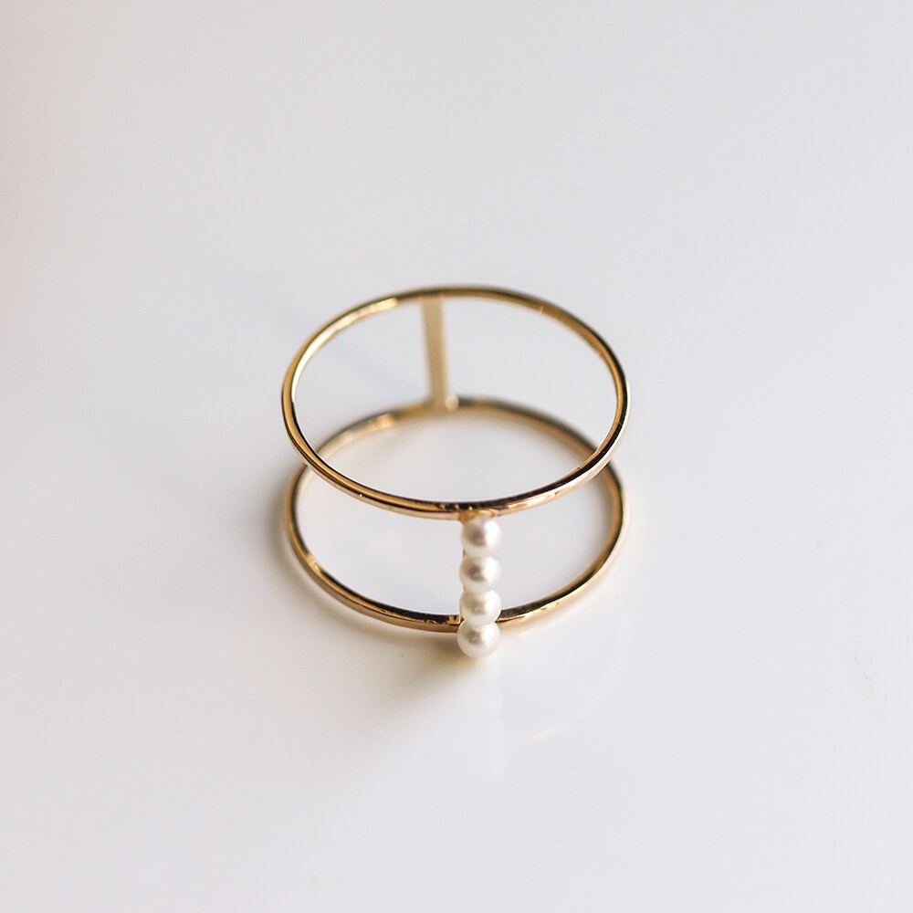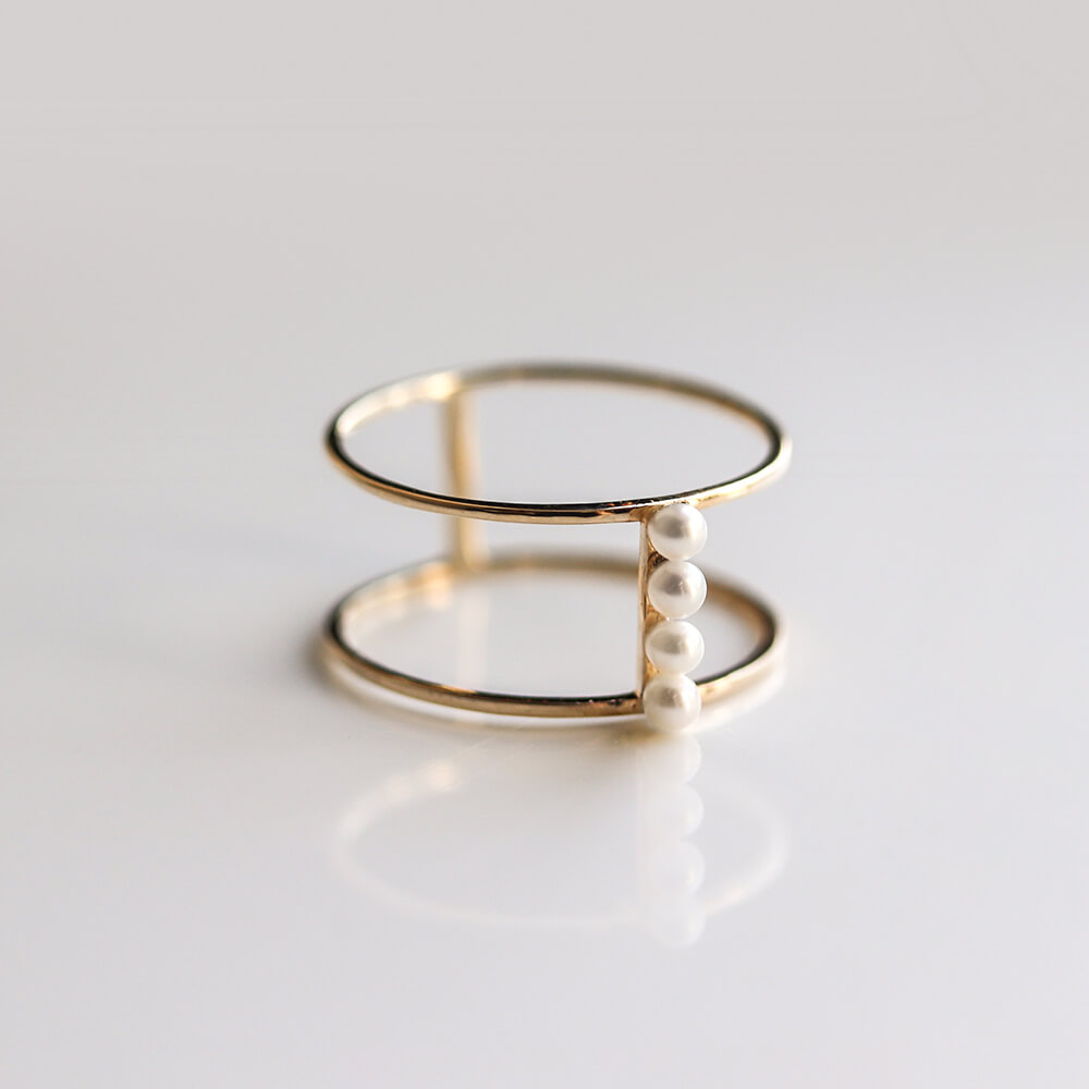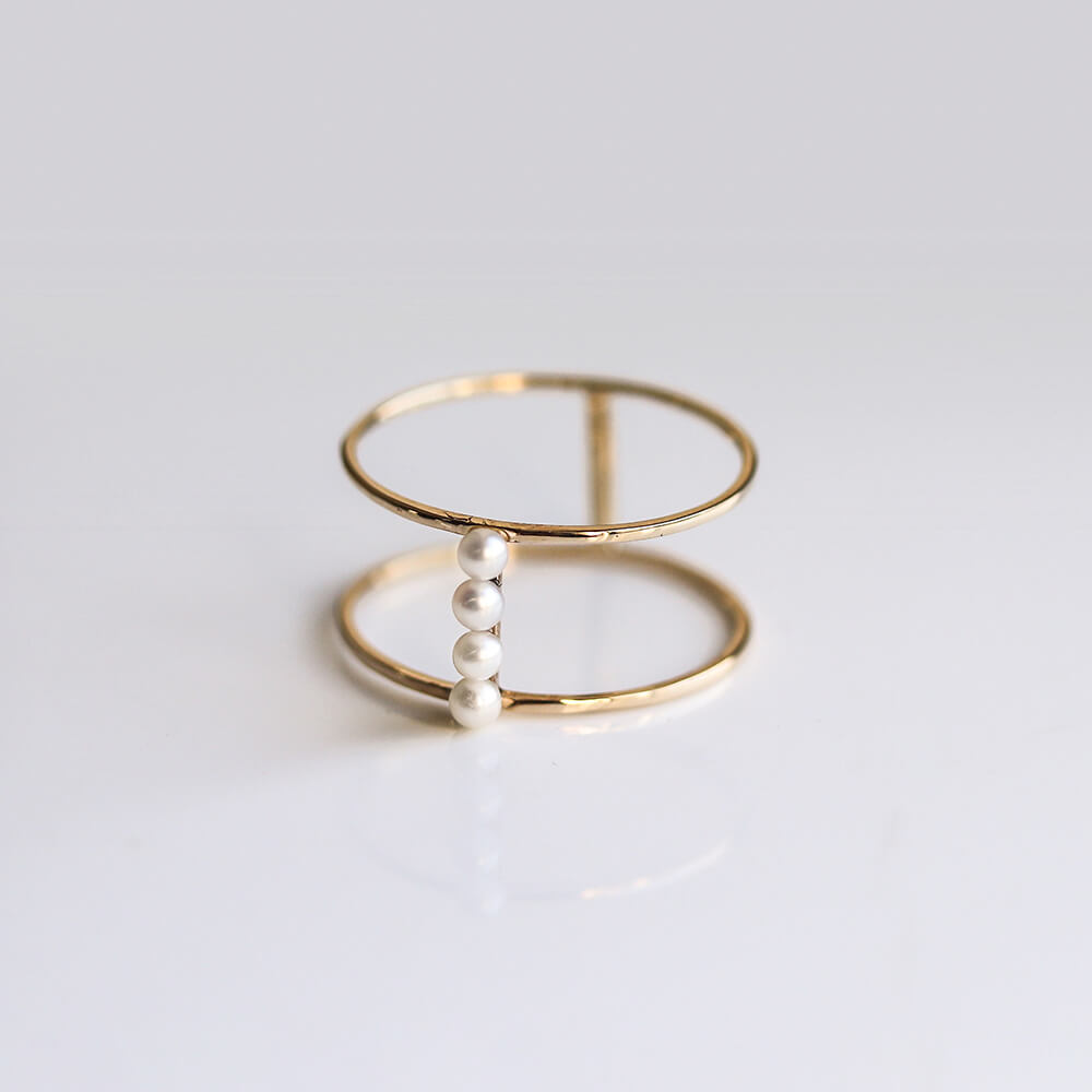 繊細なパールとゴールドアームが都会的な印象を持つパールリング。