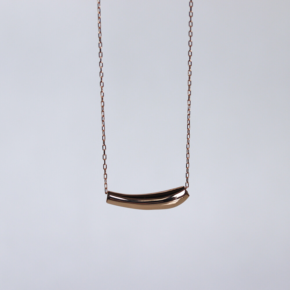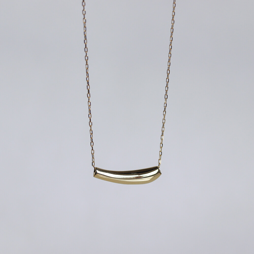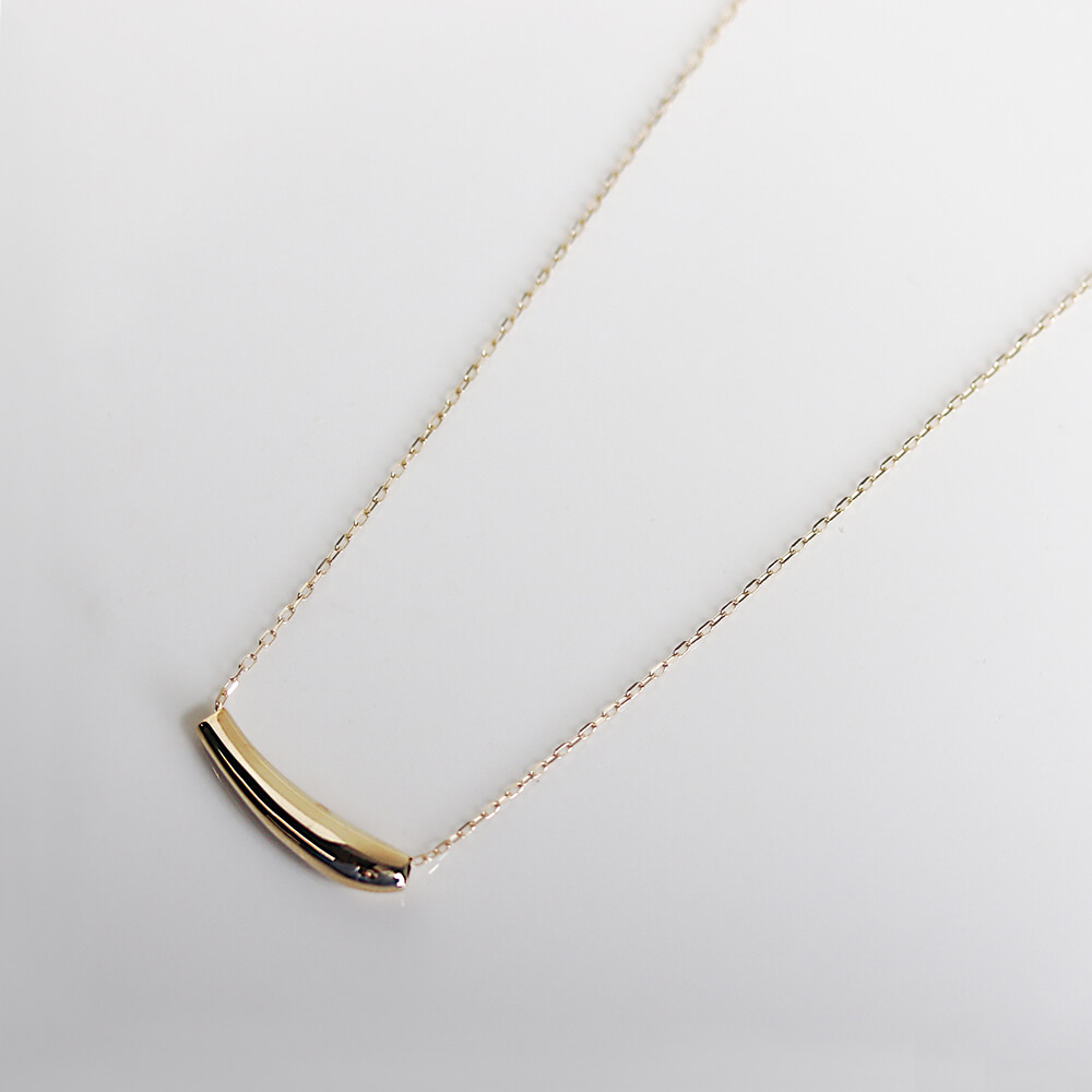 緩やかなラインのモチーフが艶やかな輝きを見せるゴールドネックレス。
