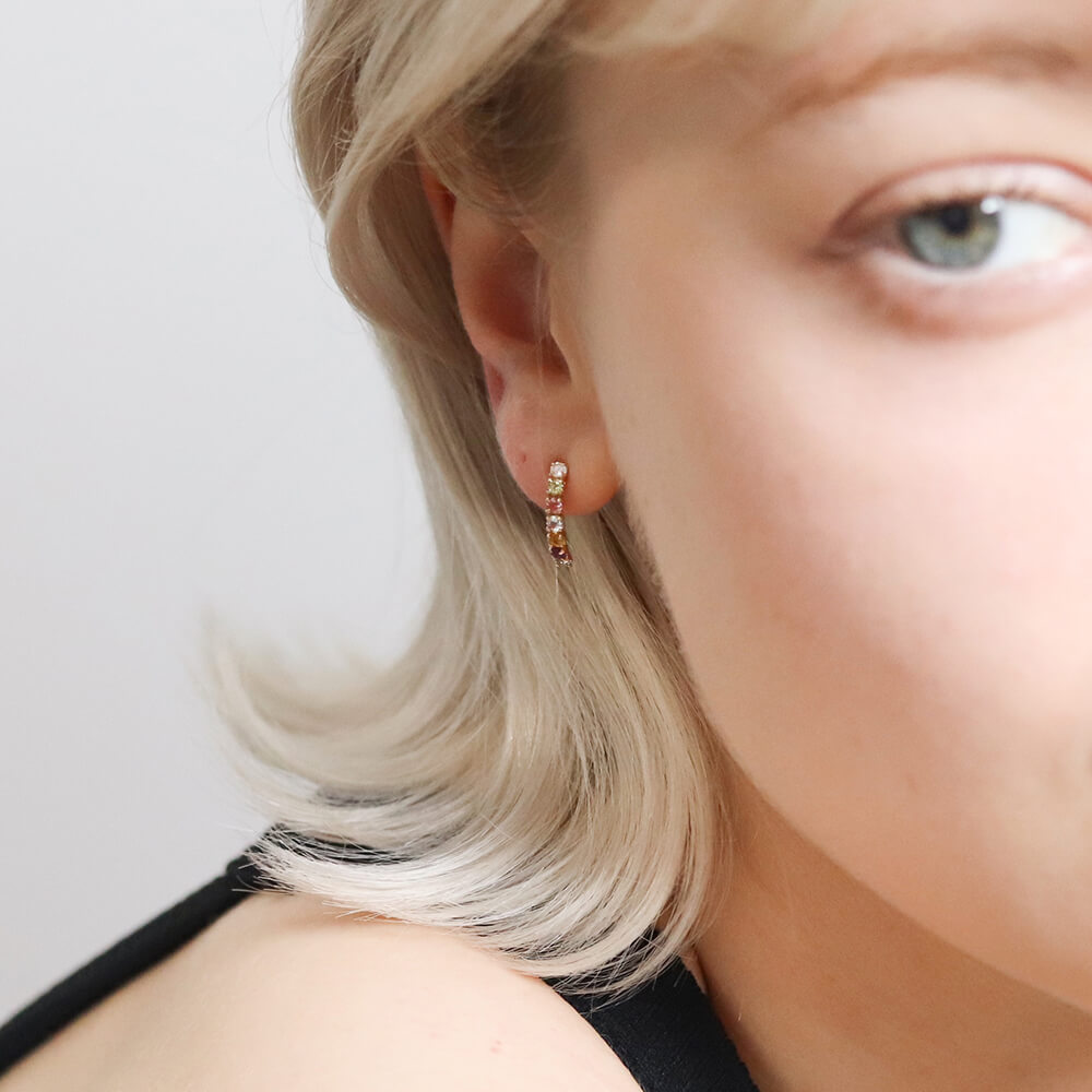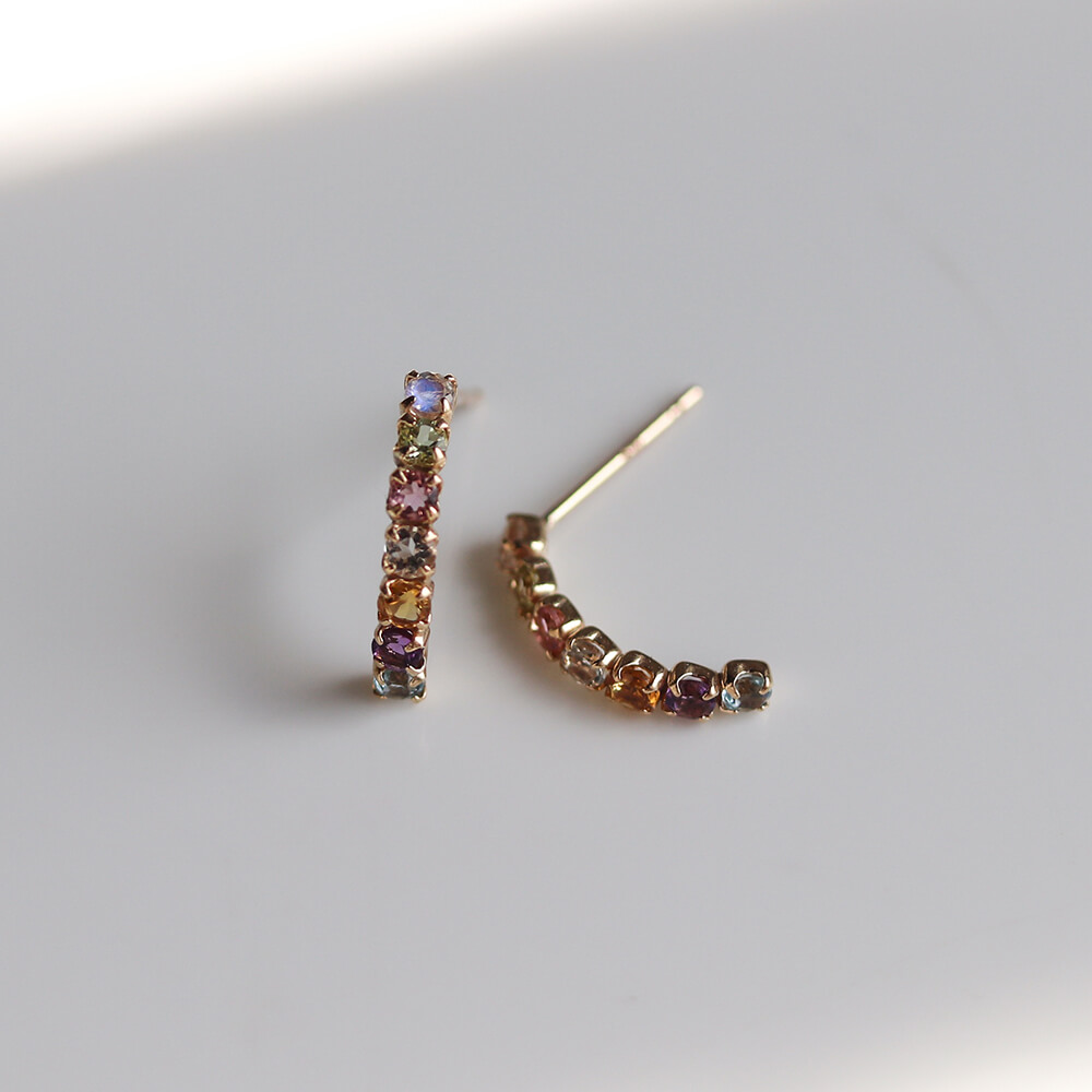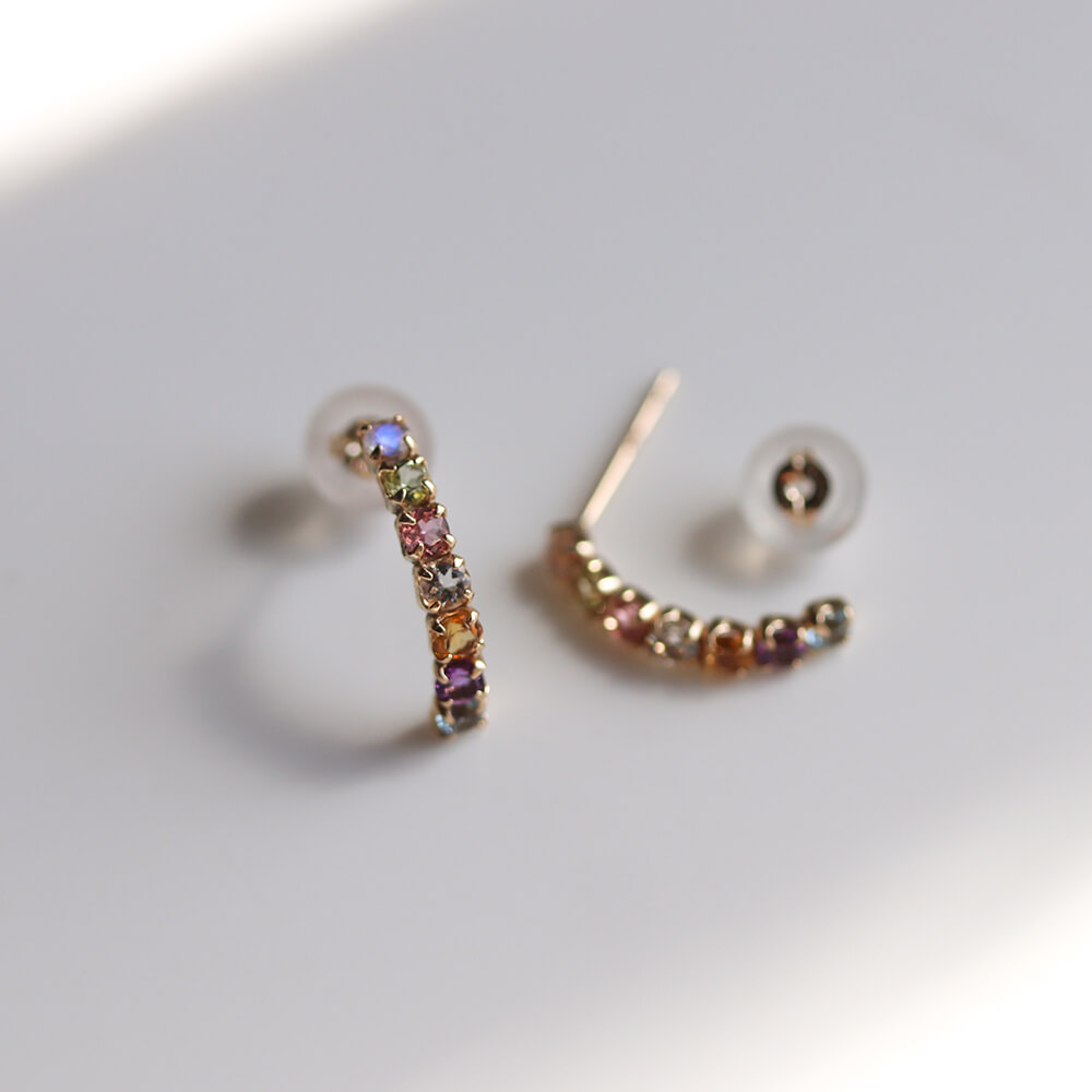 7石のカラーストーンが鮮やかに輝くマルチカラーストーンピアス。