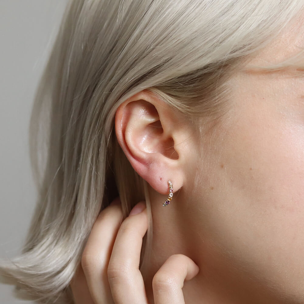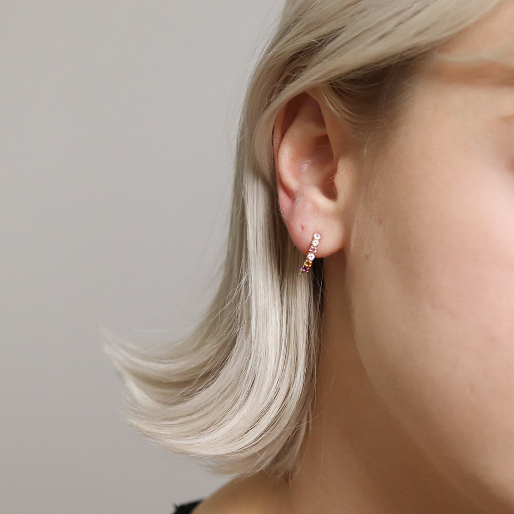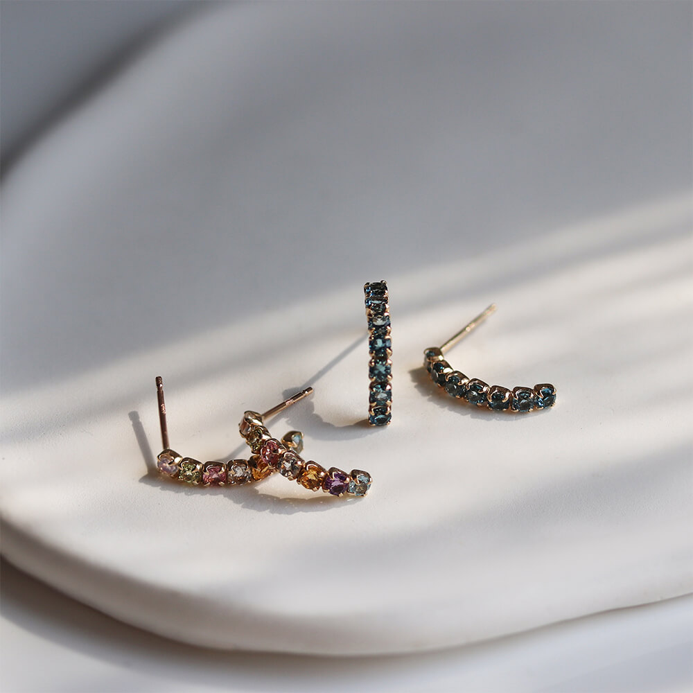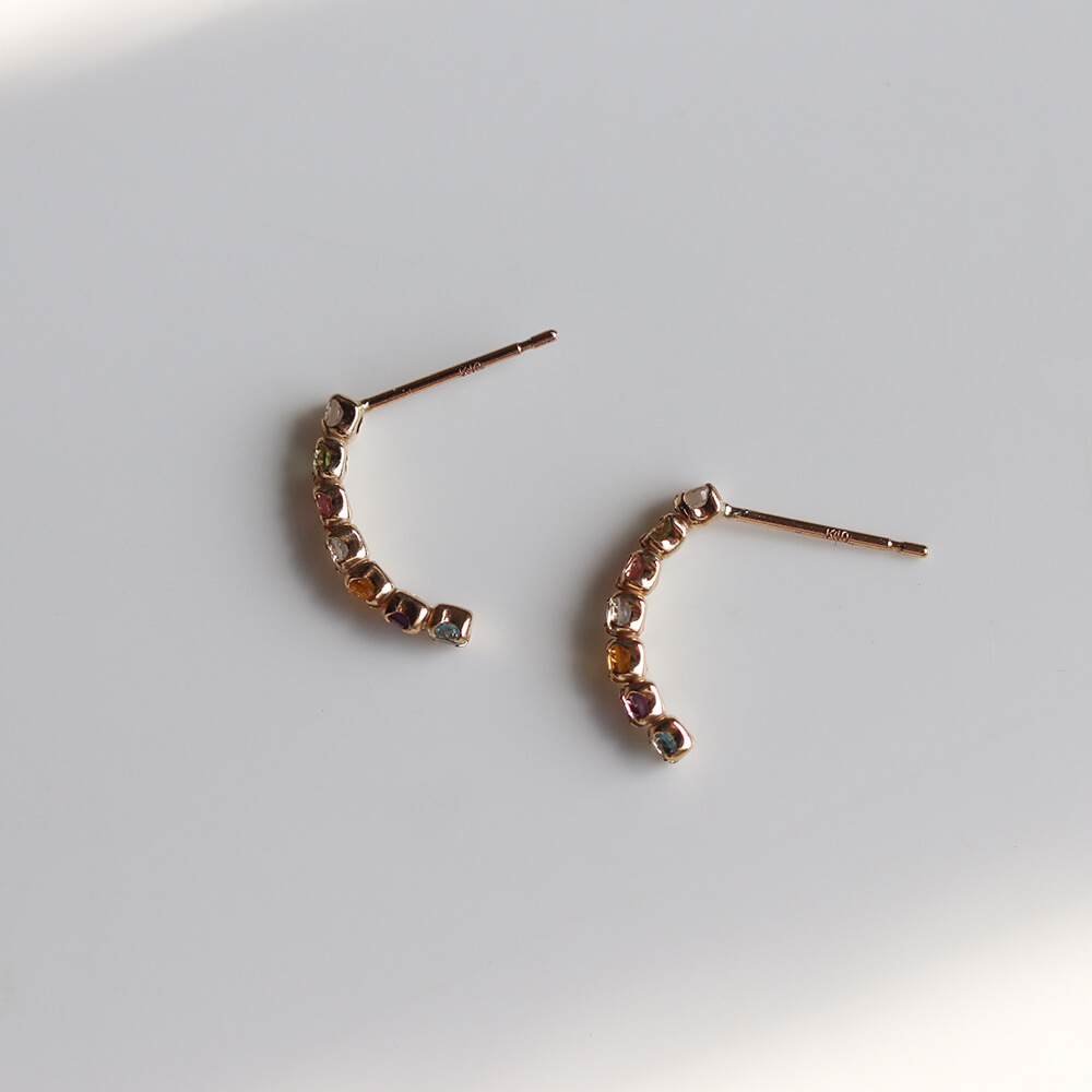7石のカラーストーンが鮮やかに輝くマルチカラーストーンピアス。