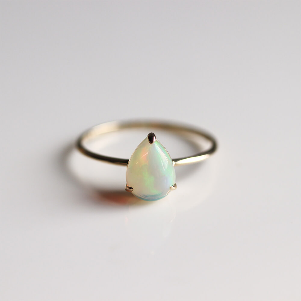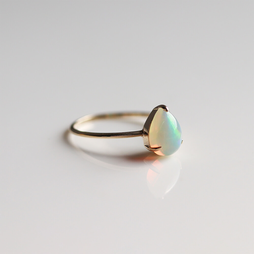 瑞々しい輝きが溢れるペアシェイプ型のオパールリング。