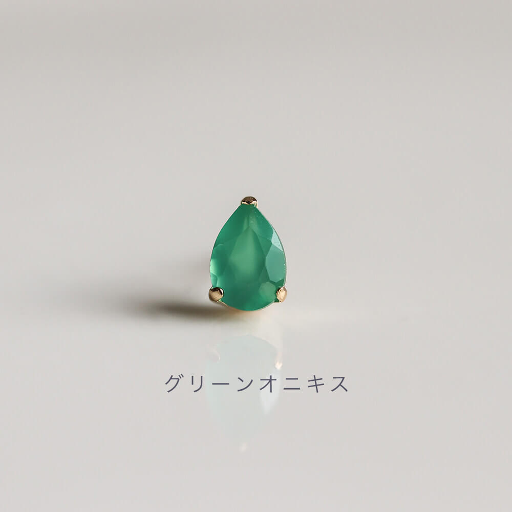 片耳用のペアシェイプカットのカラーストーンピアス。