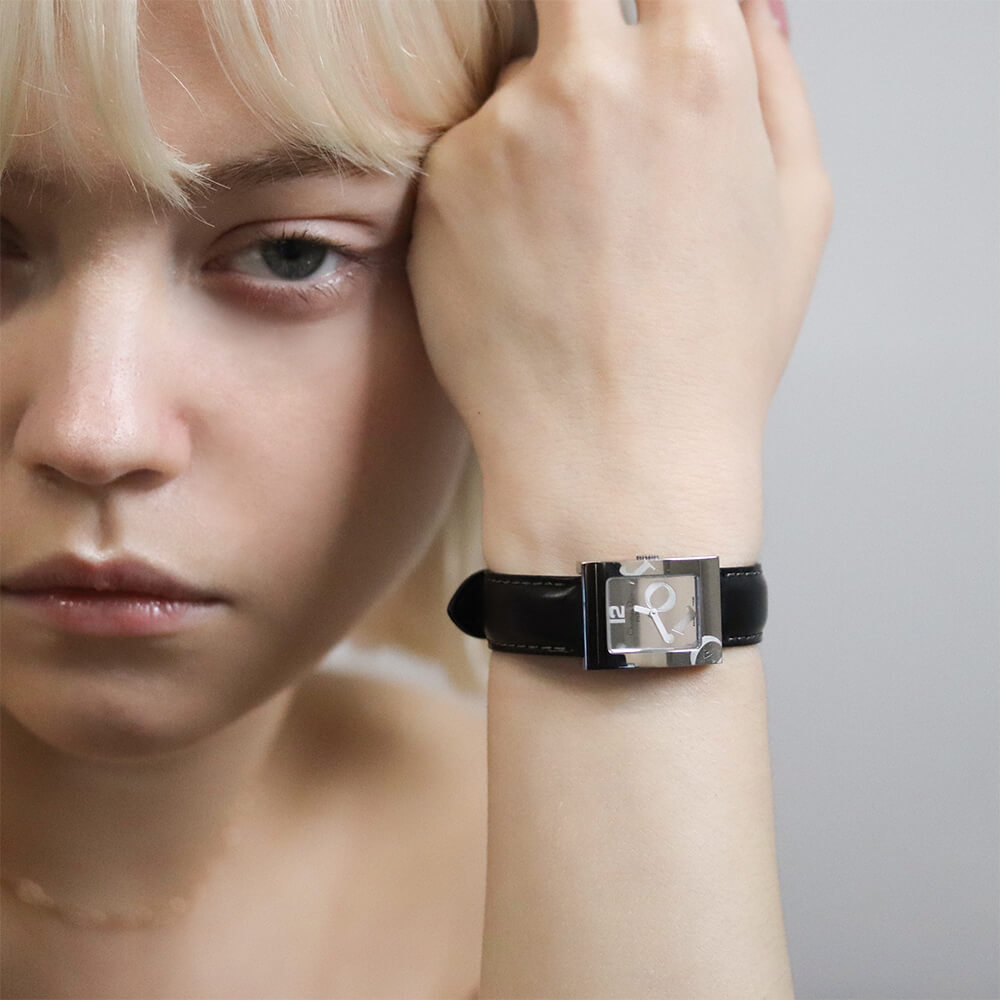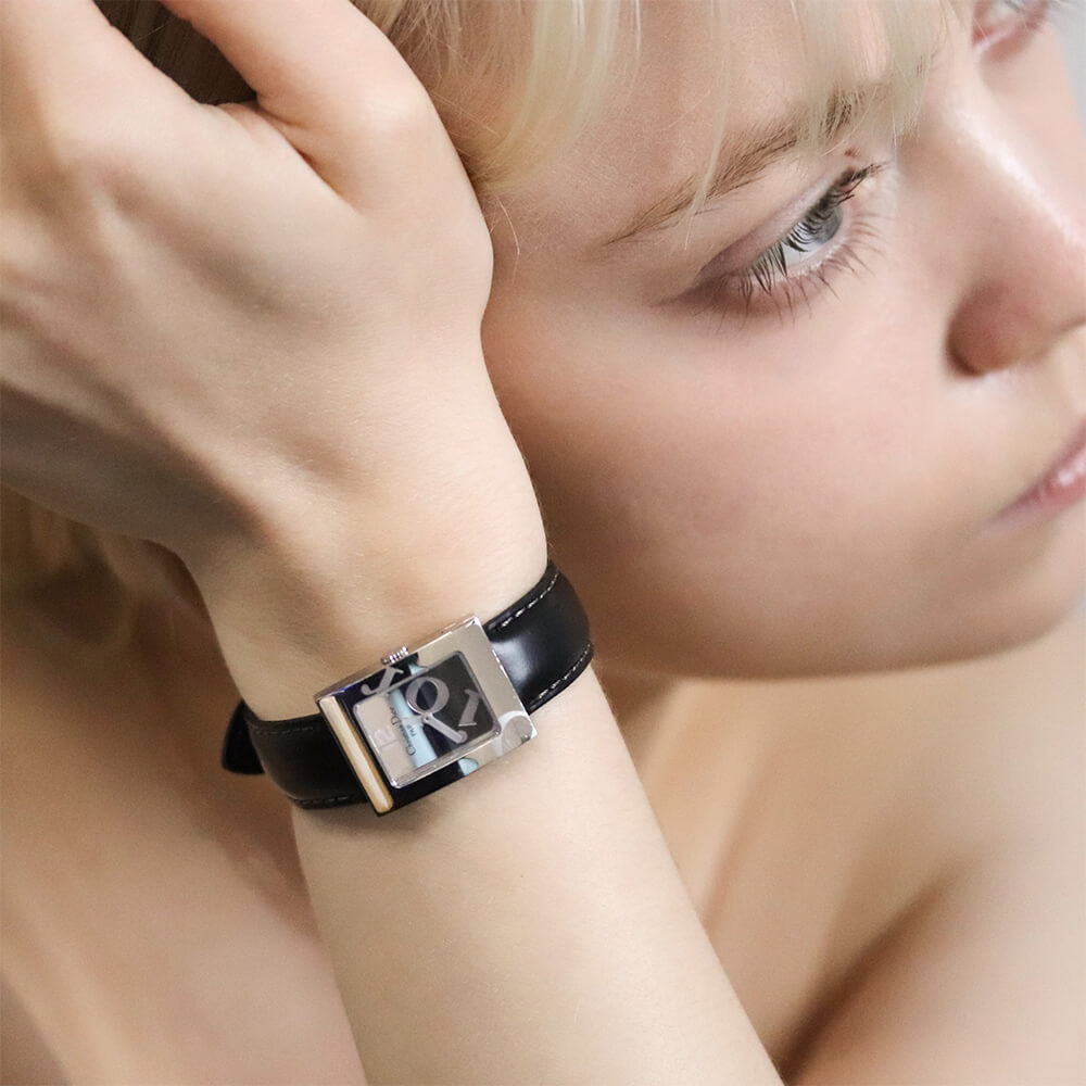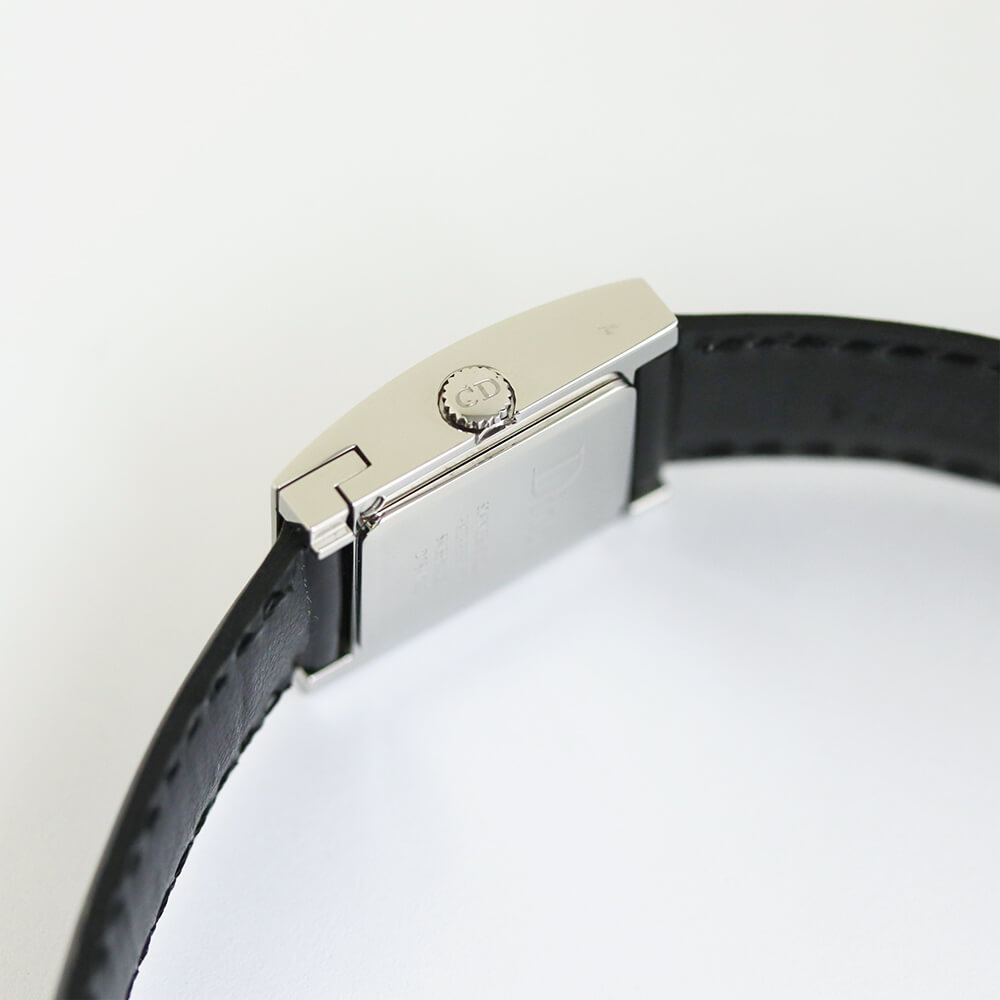 シンプルなシルバーフェイスに、ブランド名が映え、TPOを気にせず合わせやすいデザイン。