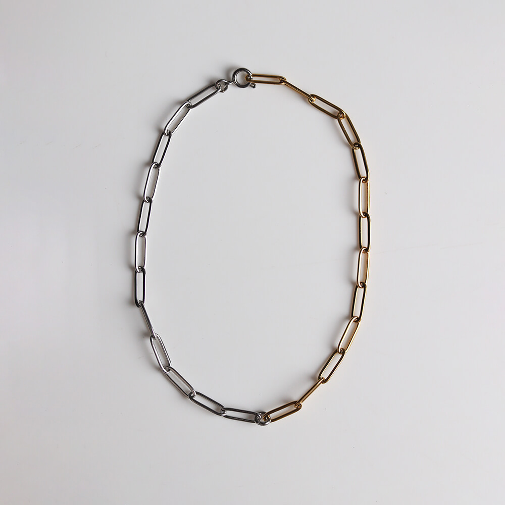 2色のコントラストがこなれ感をプラスするコンビカラーチェーンブレスレット。
