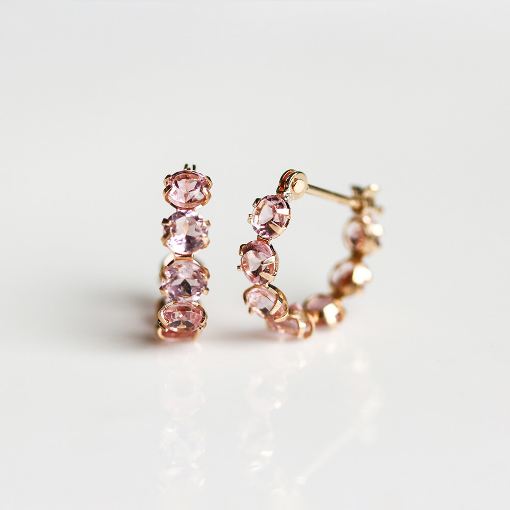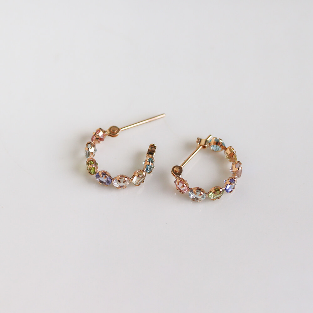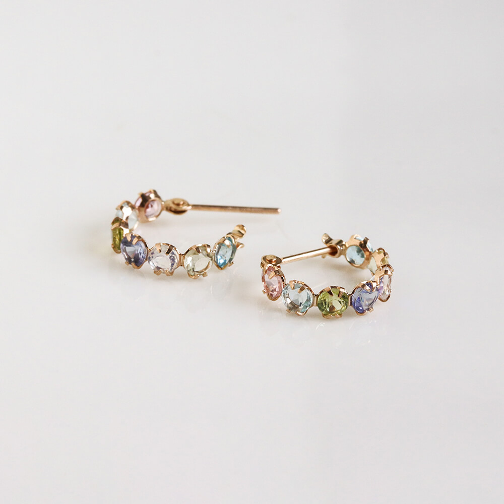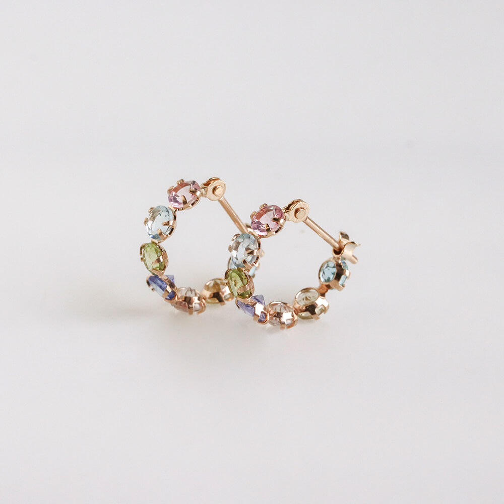 淡い色味が素敵なカラーストーンを7石あしらったフープスナップピアス。