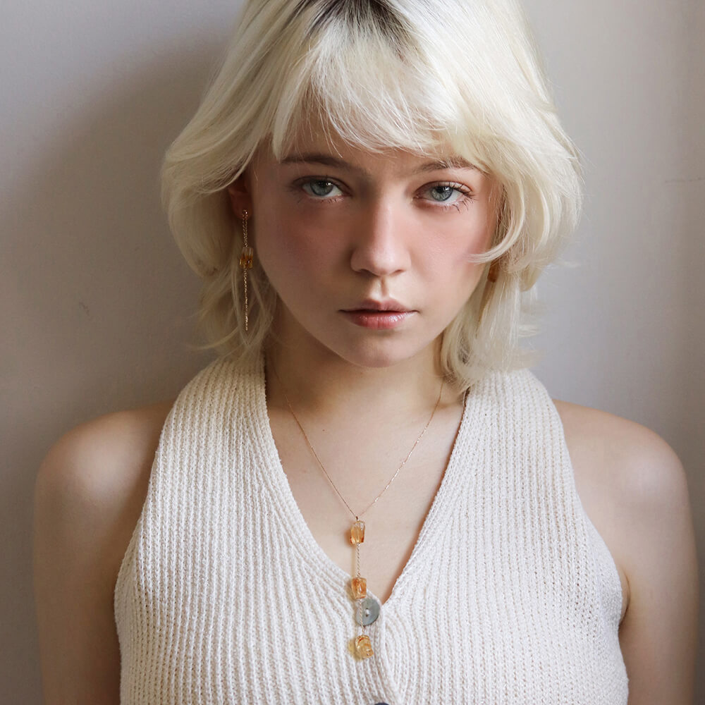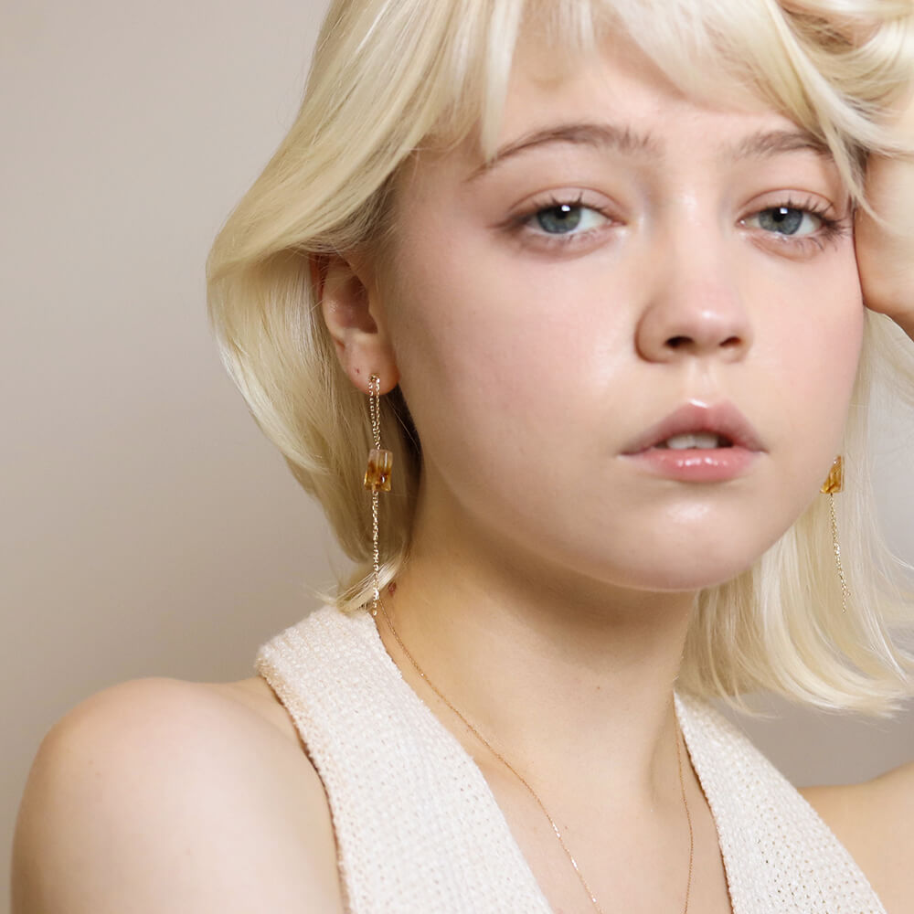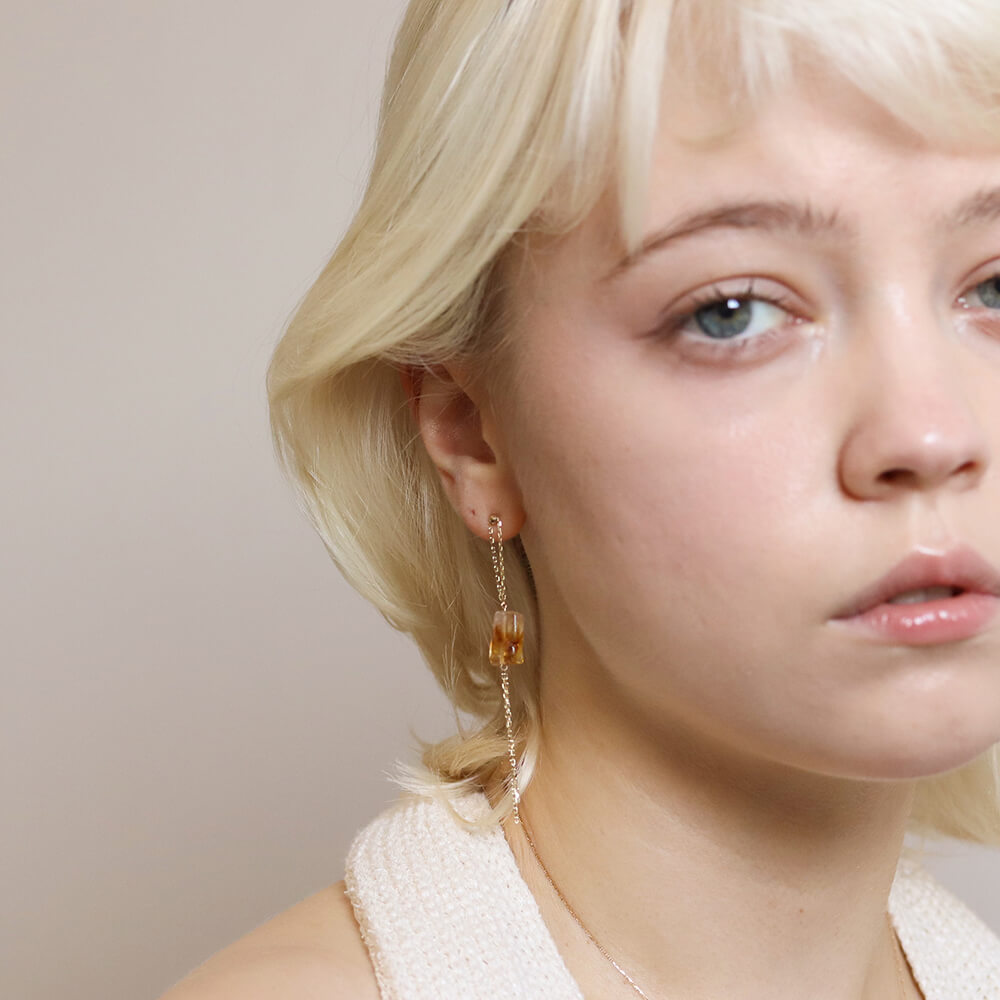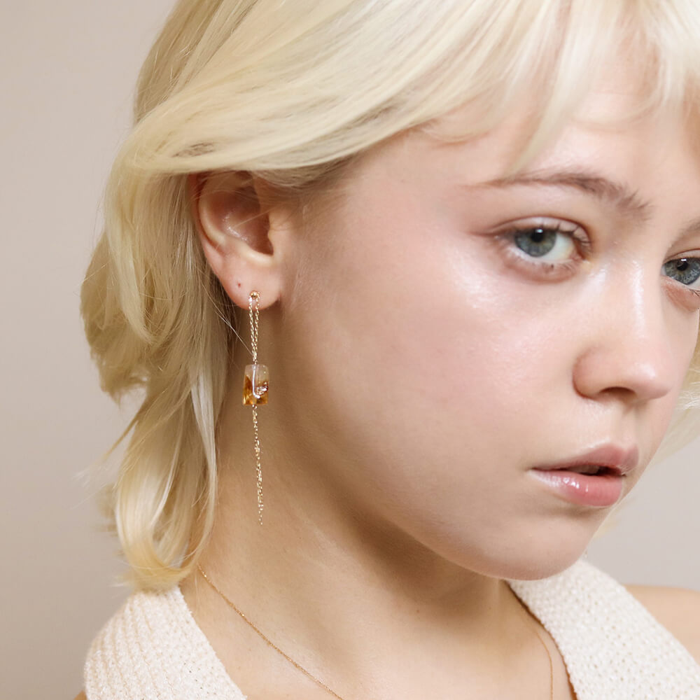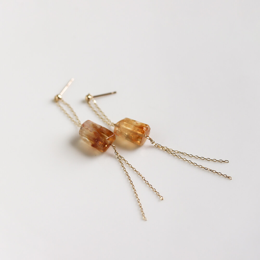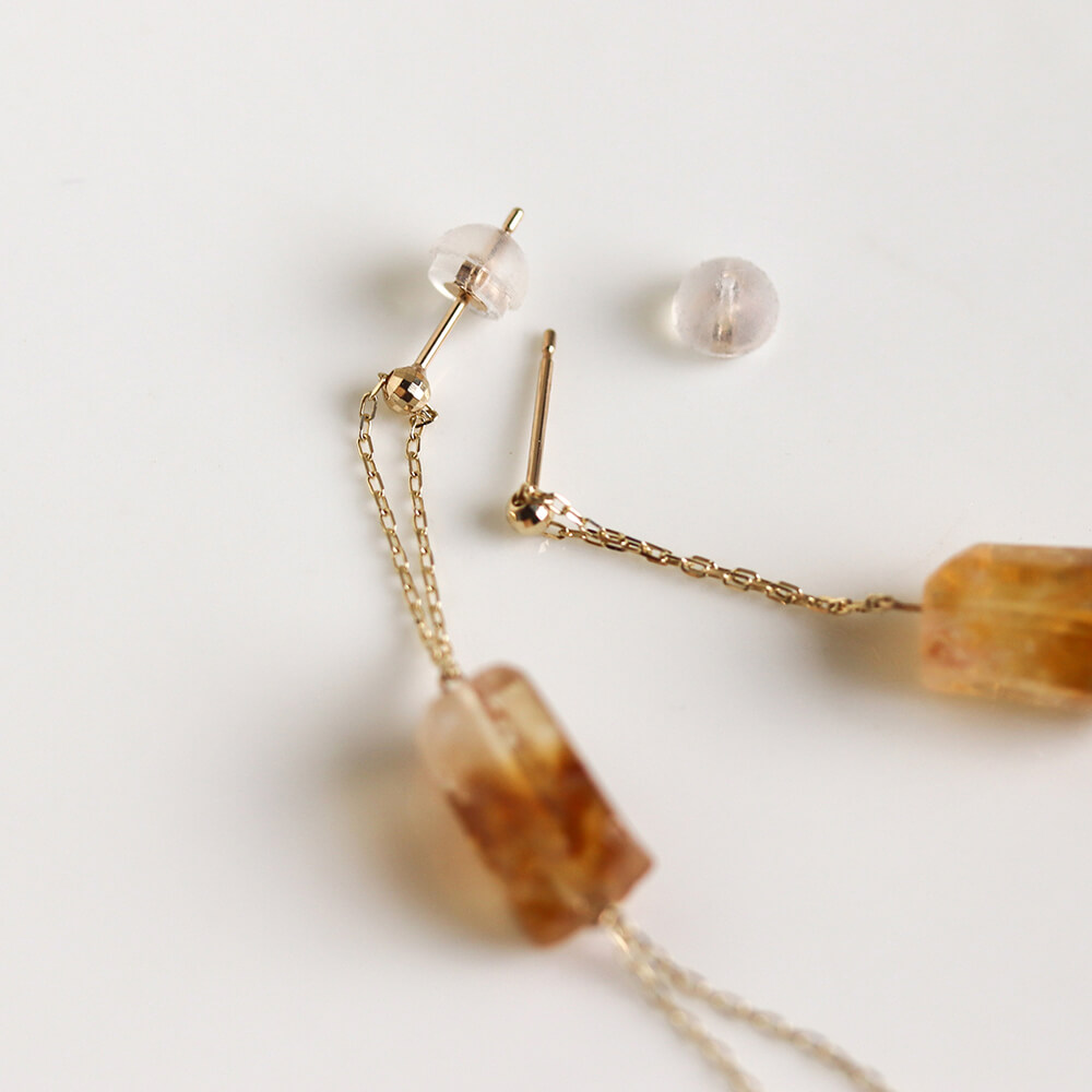 一石のファントムシトリンが、耳元でやさしく揺れるチェーンピアス。