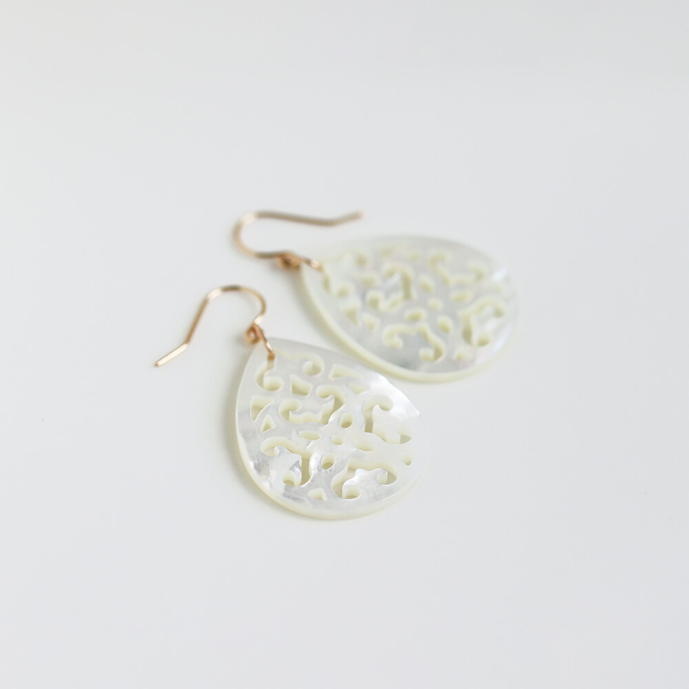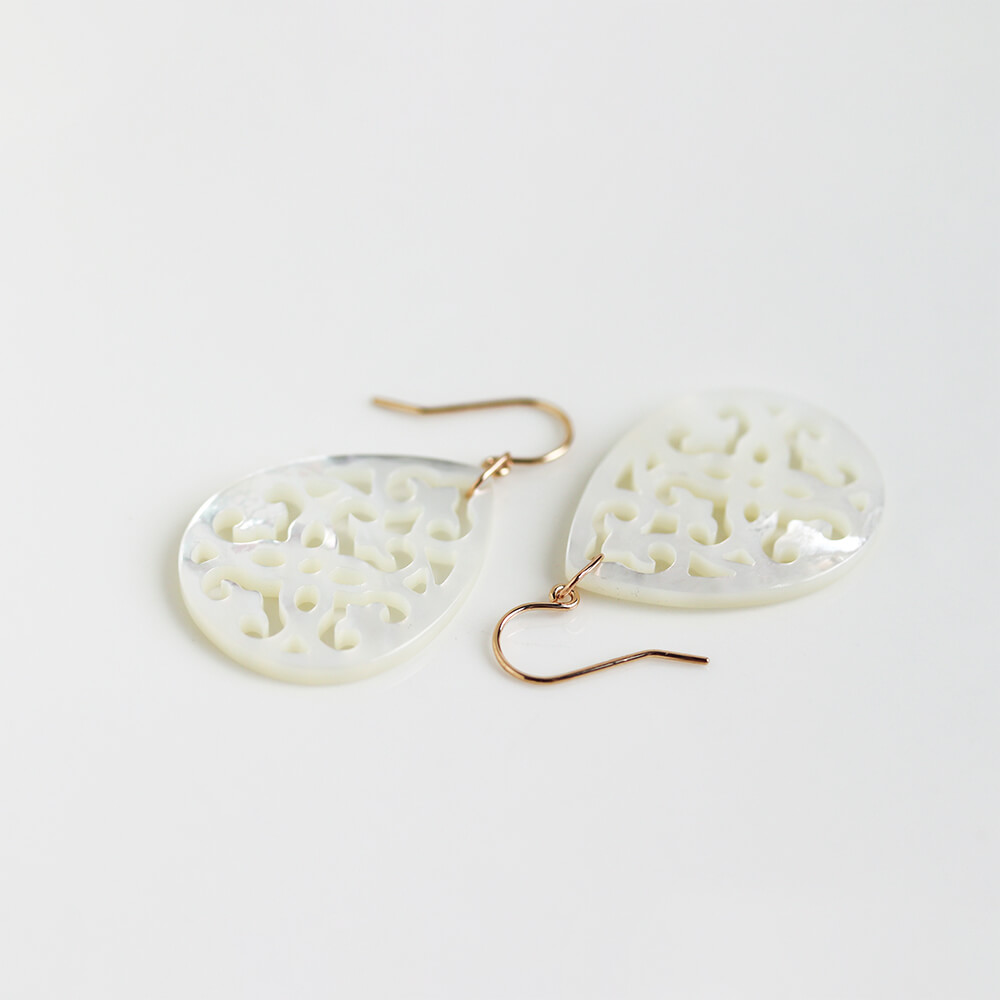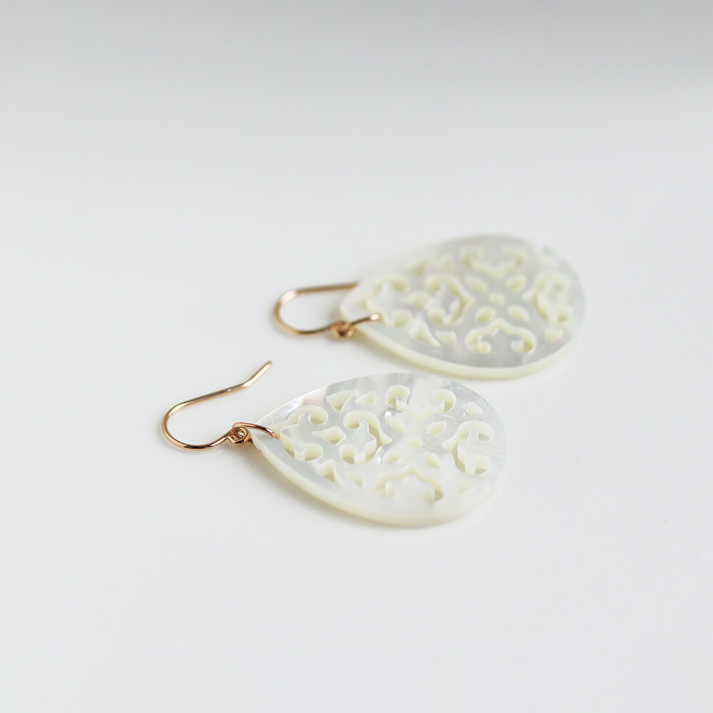 耳に乗せたフラワーが明るい輝きを見せ気分を上げてくれるアイテムに。