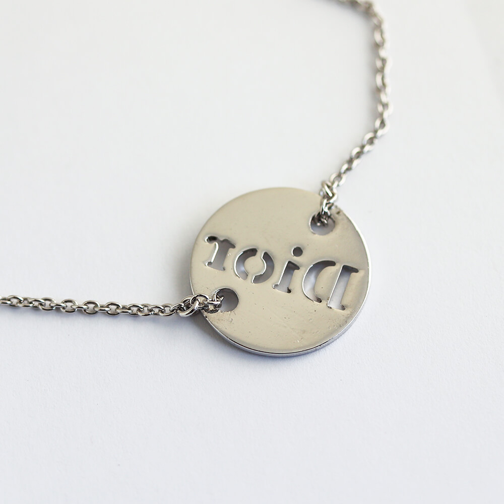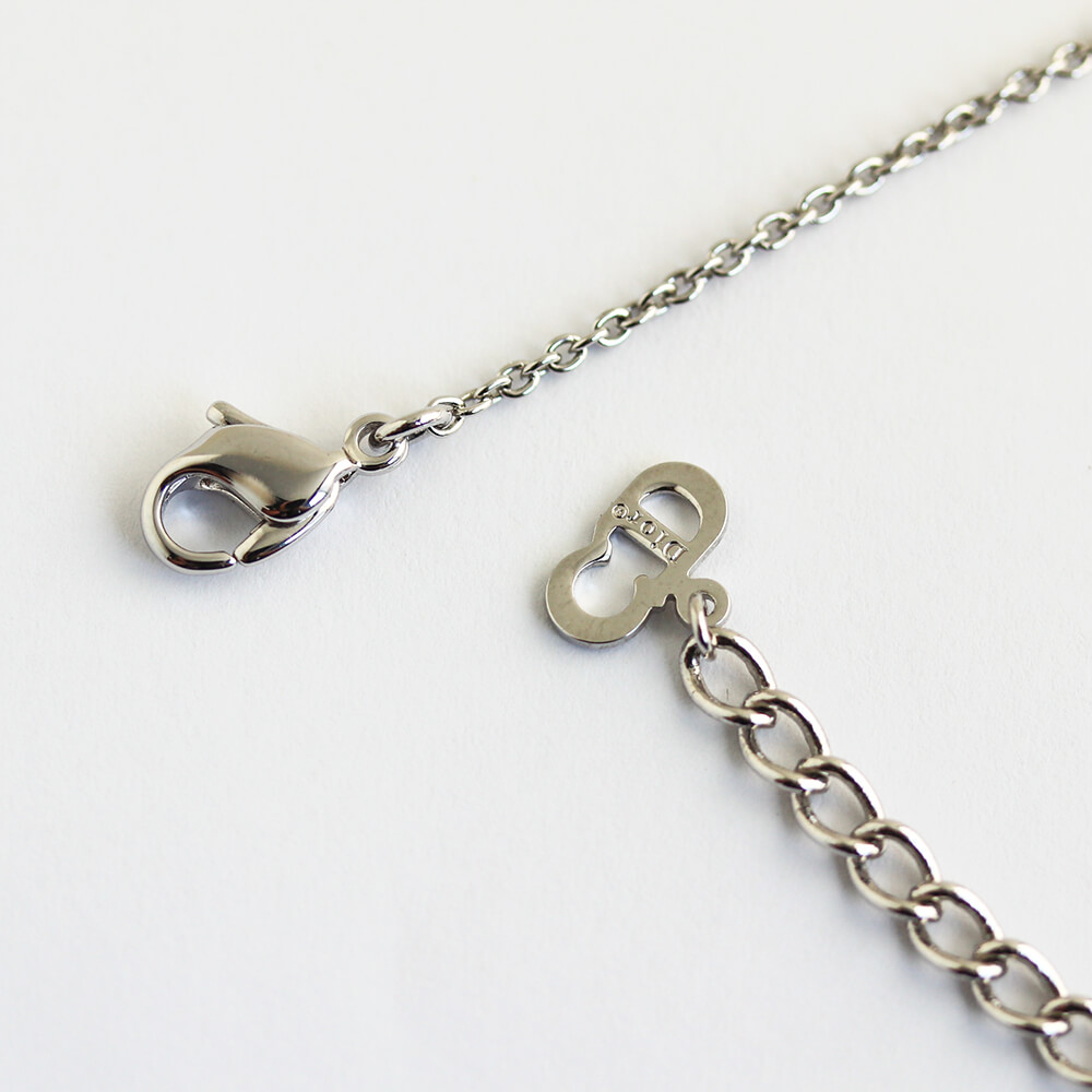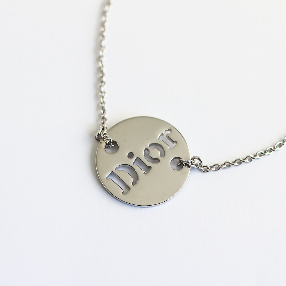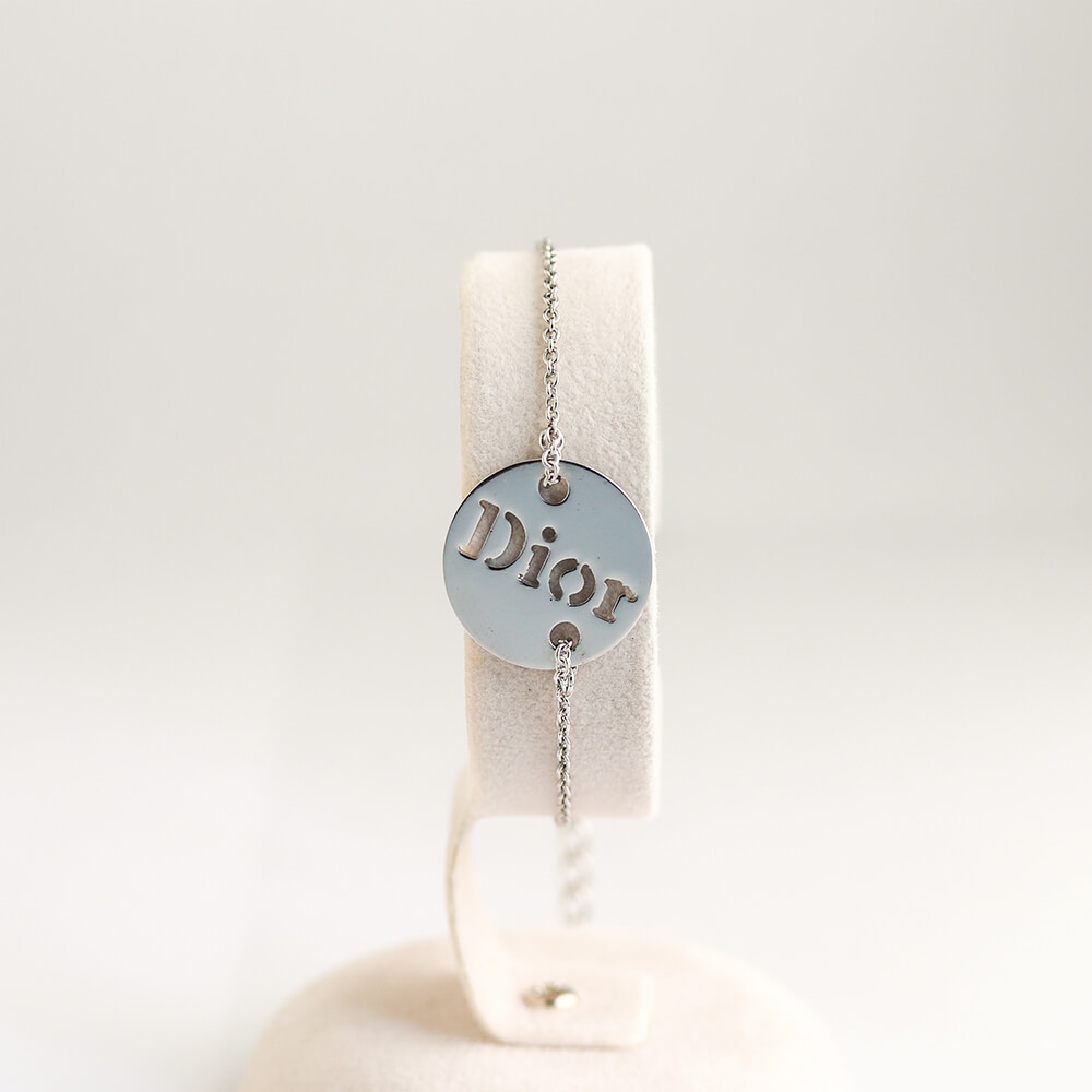 Diorロゴがあしらわれたシルバーカラーのラウンドプレートが配されたブレスレット。
